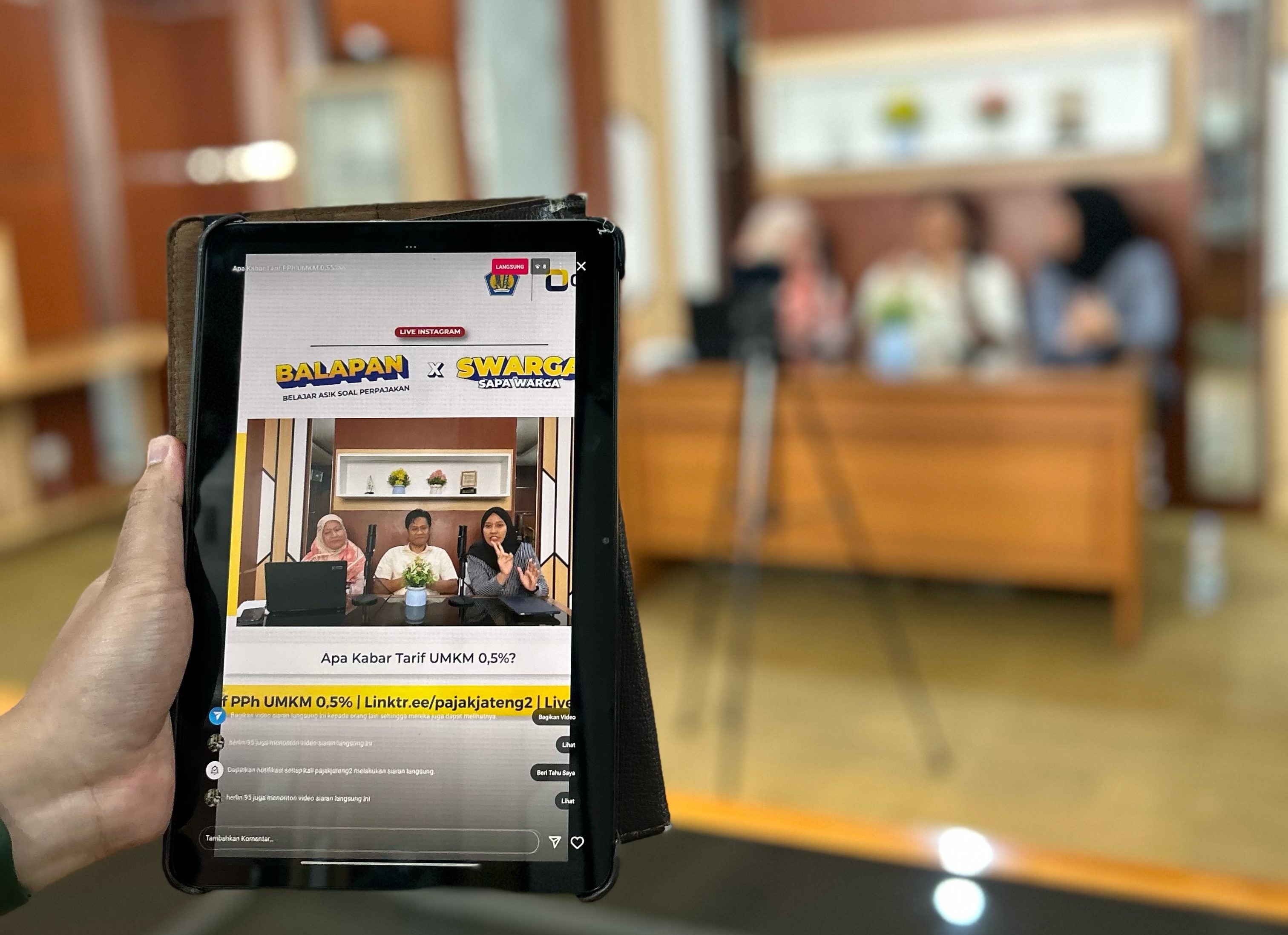 Kantor Wilayah Direktorat Jenderal Pajak (Kanwil DJP) Jawa Tengah II melakukan Live Instagram dengan tajuk Swarga (Sapa Warga) dan Balapan (Bahas Asik Soal Perpajakan) yang mengupas tuntas mengenai tarif Pajak Penghasilan (PPh) UMKM 0,5% di Kota Surakarta (Selasa, 15/4).