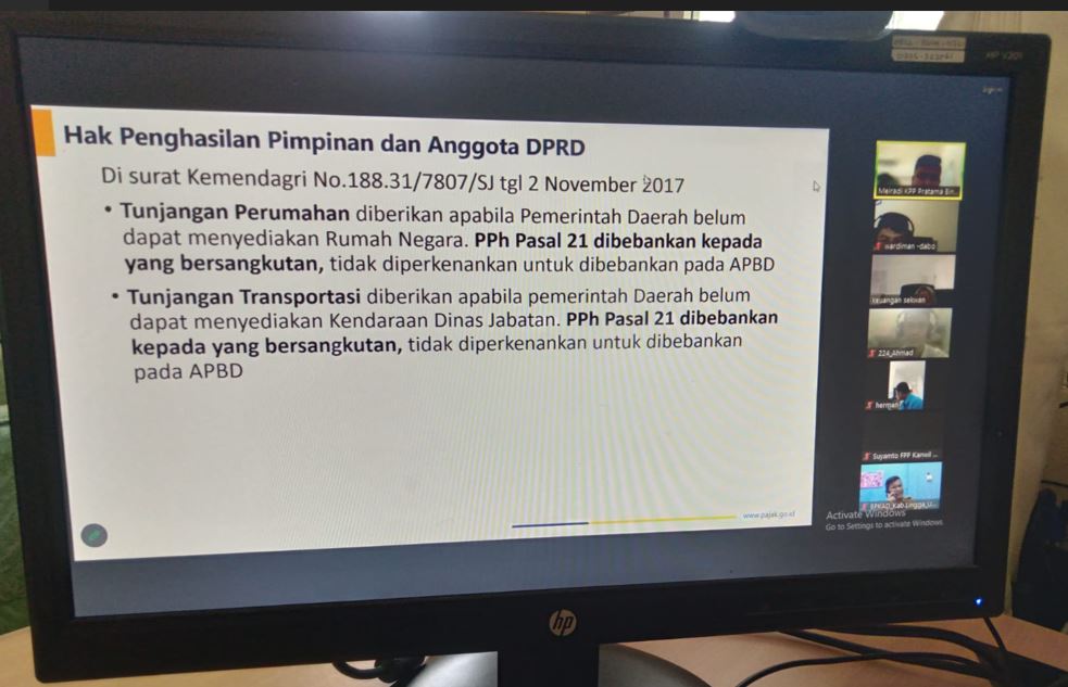 Kantor Pelayanan, Penyuluhan, dan Konsultasi Perpajakan (KP2KP) Dabo Singkep bersinergi dengan Kantor Pelayanan Pajak (KPP) Pratama Bintan serta Kantor Wilayah Direktorat Jenderal Pajak Kepulauan Riau (Kanwil DJP Kepri) menggelar edukasi perpajakan secara daring kepada staf Bagian Keuangan Sekretaris Dewan (Sekwan) DPRD dan Badan Pengelolaan Keuangan dan Aset Daerah (BPKAD) Kabupaten Lingga, Kepulauan Riau (Selasa, 24/10).