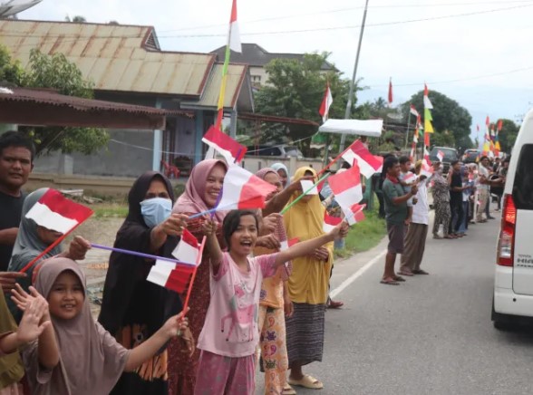 Ribuan warga, pelajar termasuk pegawai pajak kutacane ikut antusias berdiri di sepanjang jalan Nasional Kutacane-Gayo Lues dengan mengibarkan bendera merah putih sebagai bentuk dukungan dalam menyambut tim Kirab Api Pekan Olahraga Nasional (PON) XXI Aceh- Sumut yang tiba di Kabupaten Aceh Tenggara (Agara) (Sabtu, 31/8).