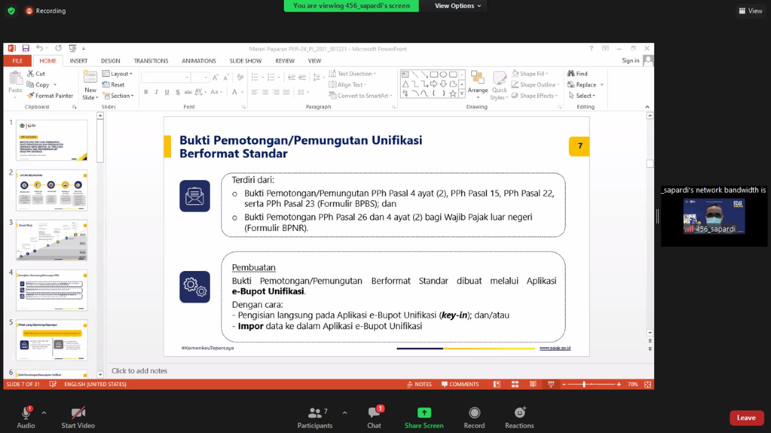Kantor Pelayanan Pajak (KPP) Madya Dua Tangerang menyelenggarakan sosialisasi e-Bupot Unifikasi kepada seluruh wajib pajak terdaftar yang diadakan di ruang penyuluhan KPP Madya Dua Tangerang, Kabupaten Tangerang (Rabu, 6/4). Kegiatan yang diselenggarakan oleh Tim Fungsional Penyuluh KPP Madya Dua Tangerang diadakan secara virtual melalui aplikasi Zoom Meeting dengan diikuti oleh 15 peserta.