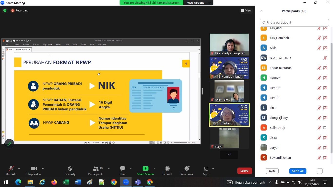 Tim Penyuluh Kantor Pelayanan Pajak (KPP) Madya Tangerang mengimbau wajib pajak untuk melakukan pemadanan NIK menjadi NPWP melalui sosialisasi secara online melalui aplikasi Zoom, langsung dari KPP Madya Tangerang, Kota Tangerang (Rabu, 15/2).
