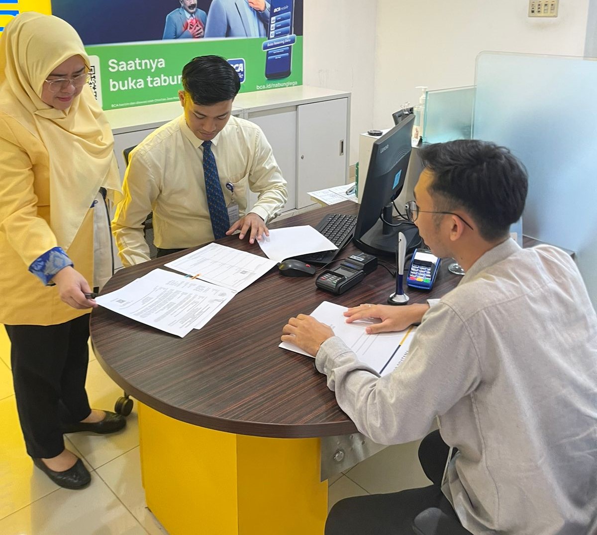 Juru Sita Pajak Negara (JSPN) Kantor Pelayanan Pajak (KPP) Pratama Natar, Alivo Pradana dan Muhammad Riyan Saputra, melakukan tindakan penagihan aktif terhadap Wajib Pajak Badan dengan inisial PT WTB berupa pemindahbukuan rekening penanggung pajak yang telah disita di Kantor Cabang Utama (KCU) Bank BCA Bandar Lampung, Kecamatan Bumi Waras, Kota Bandar Lampung, Provinsi Lampung (Kamis, 10/10).
