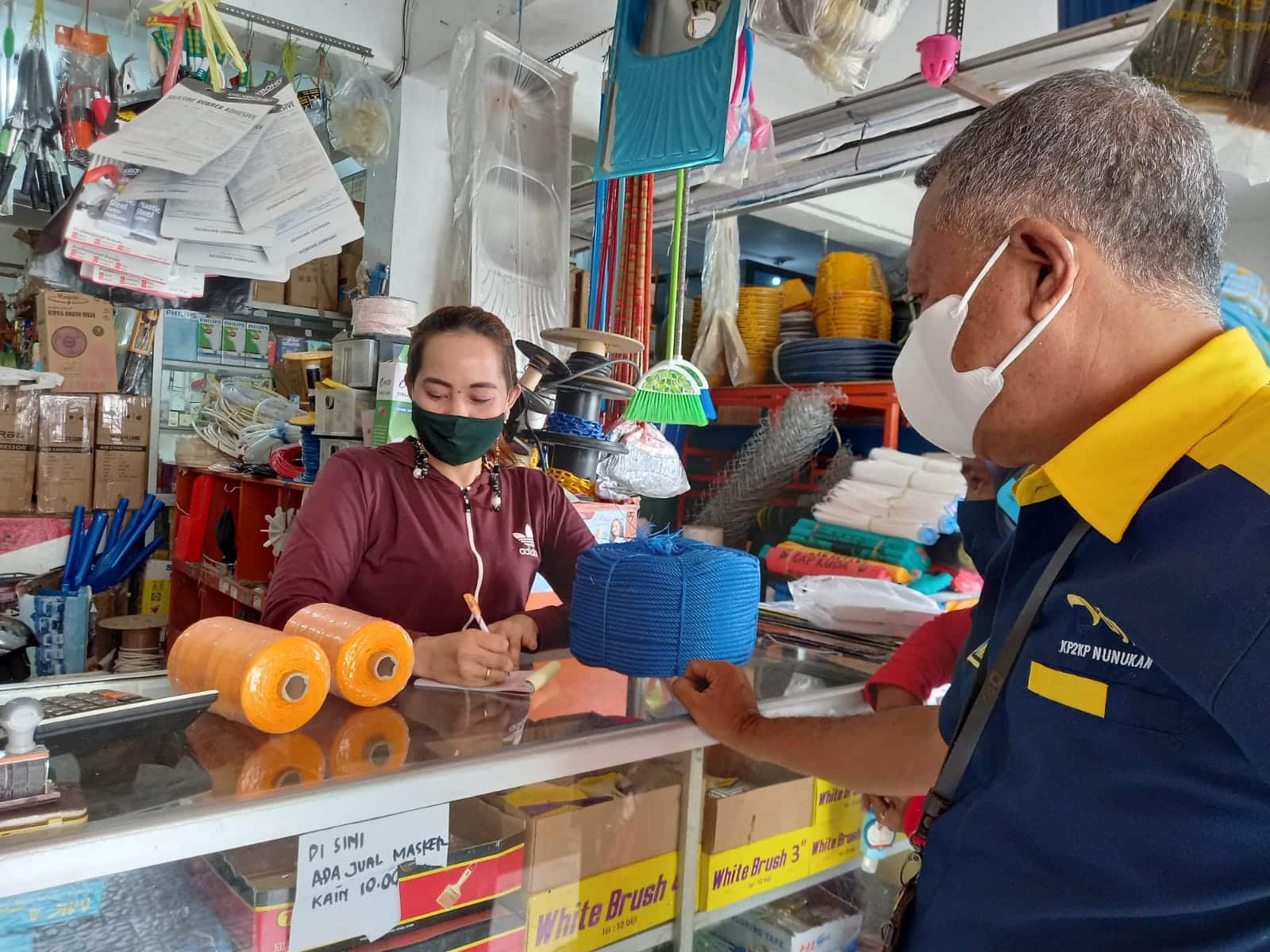 Petugas Kantor Pelayanan, Penyuluhan, dan Konsultasi Perpajakan (KP2KP) Nunukan mengunjungi salah satu pemilik toko bangunan di Jalan Pattimura atau biasa disebut sebagai Jalan TVRI oleh warga lokal Kelurahan Nunukan Timur, Kecamatan Nunukan, Kabupaten Nunukan (Kamis, 2/9). Tim KP2KP Nunukan dipimpin oleh Kadri Silawane didampingi 3 petugas lainnya.