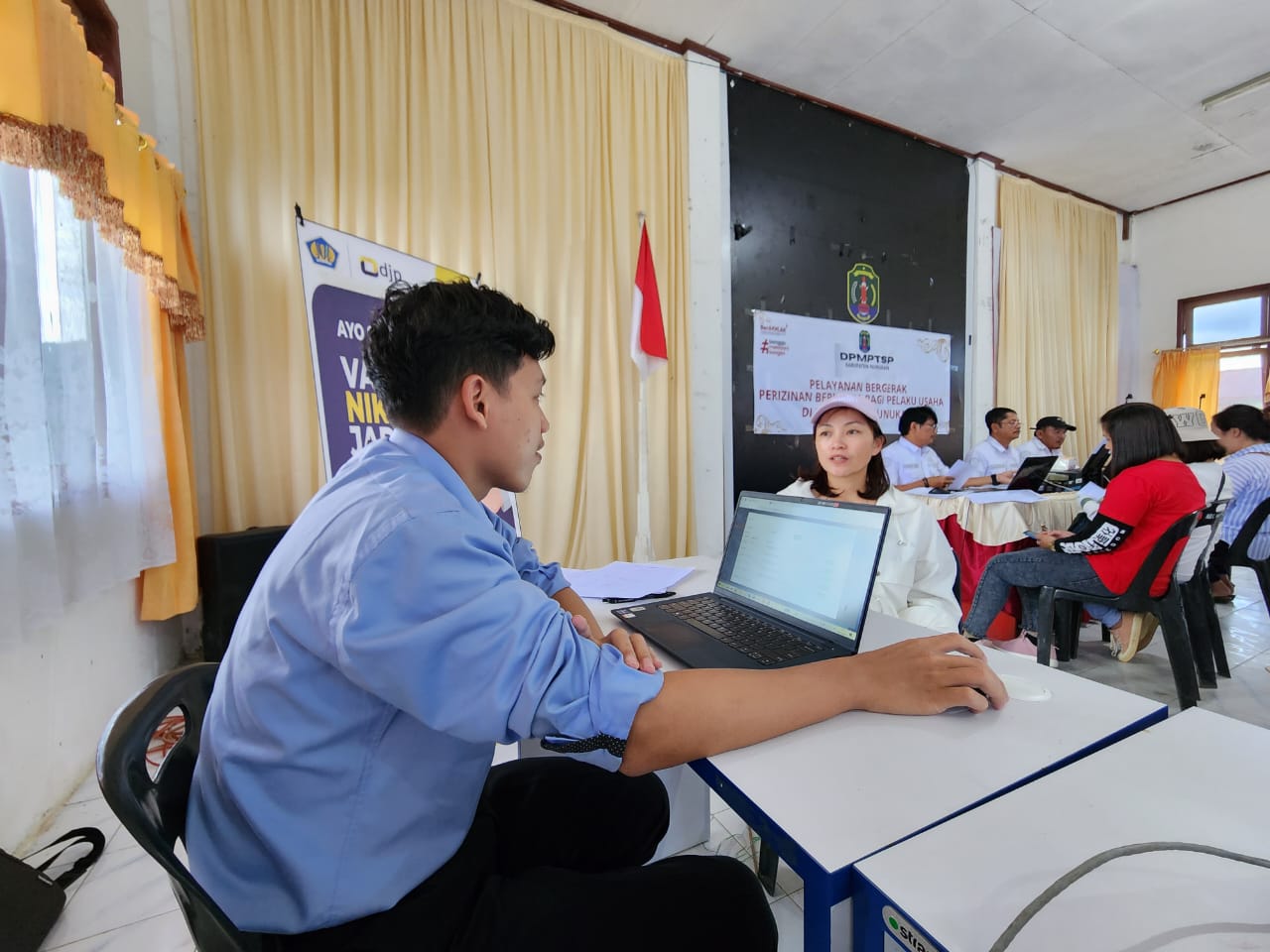 Kantor Pelayanan Penyuluhan dan Konsultasi Perpajakan (KP2KP) Nunukan melanjutkan pelayanan bergerak bersama Dinas Penanaman Modal dan Pelayanan Terpadu Satu Pintu (DPMPTSP) Kabupaten Nunukan di Kantor Kecamatan Krayan, Kab. Nunukan (Rabu, 8/3). Pelayanan hari ini adalah lanjutan dari pelayanan yang telah dilakukan pada hari sebelumnya (Selasa, 7/3).