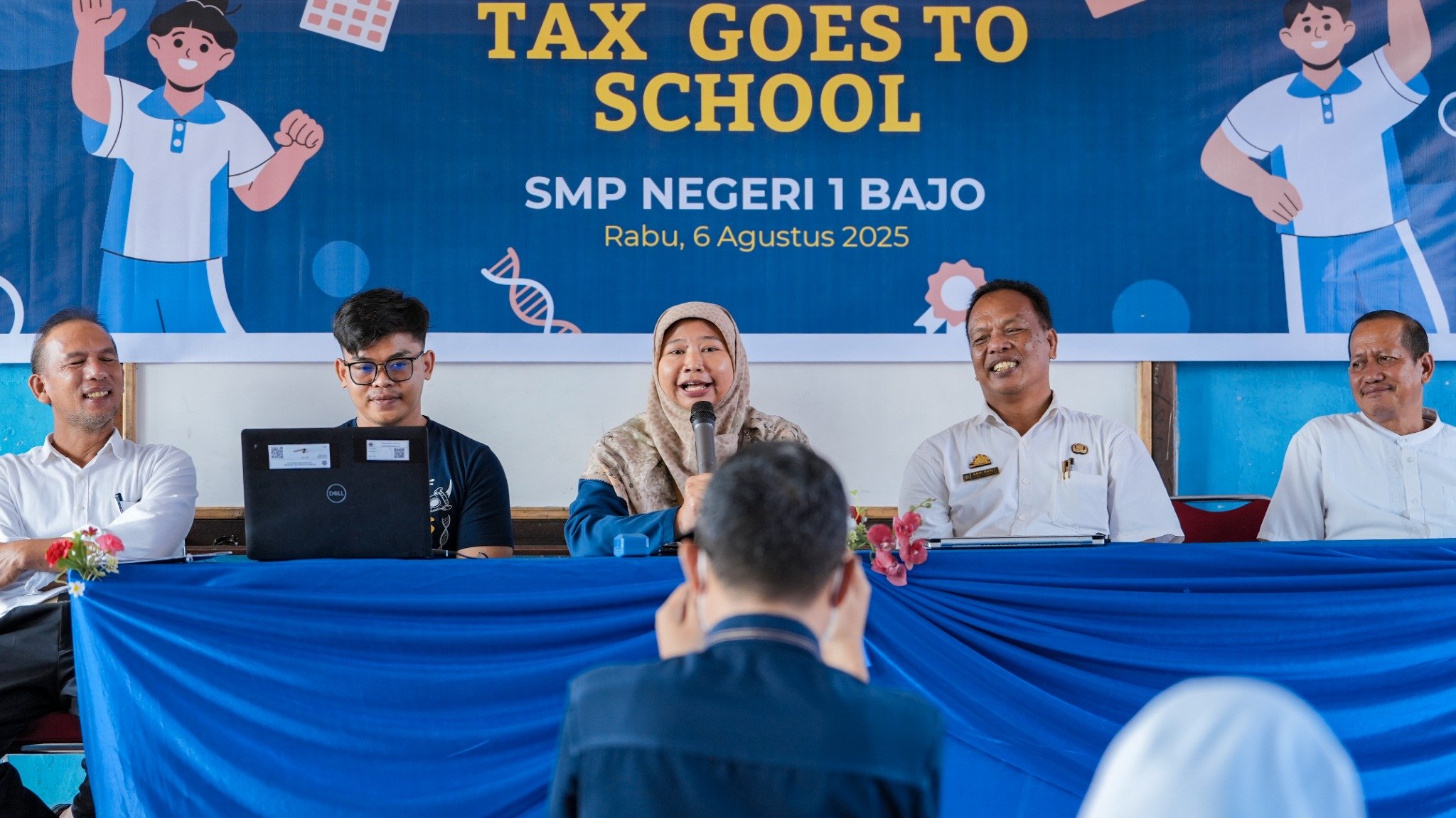 Kantor Pelayanan Pajak (KPP) Pratama Palopo mengadakan kegiatan Tax Goes To School (TGTS) di Sekolah Menengah Pertama (SMP) Negeri 1 Bajo, Kabupaten Luwu (Rabu, 6/8). Kegiatan ini bertujuan membangun kesadaran pajak sejak dini bagi para pelajar.