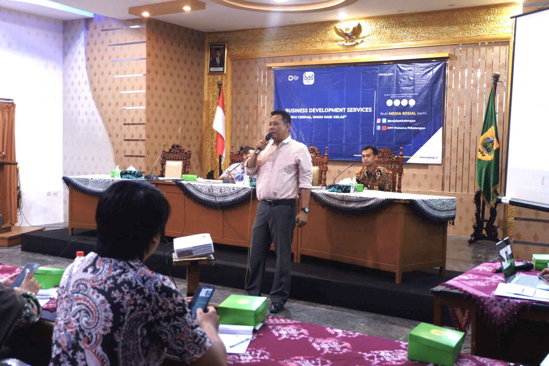 Business Development Service dihadiri oleh 35 peserta pelaku usaha Usaha Kecil dan Menengah (UMKM) yang telah dibina oleh Dinas Koperasi dan UMKM, Perindustrian dan Perdagangan Kabupaten Pemalang. Kegiatan Usaha yang dimiliki wajib pajak tersebut antara lain home Industri yang menjual makanan, kerajinan dan produk lainnya yang dipasarkan di Kabupaten Pemalang dan melalui online.