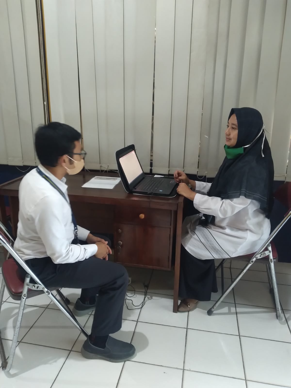 Diah, kepala sekolah sekaligus pengurus PAUD di Sukabumi melakukan konsultasi terkait Nomor Pokok Wajib Pajak (NPWP) PAUD. Ia menunjukkan kartu NPWP kepada petugas pajak Ahmad Rifai.