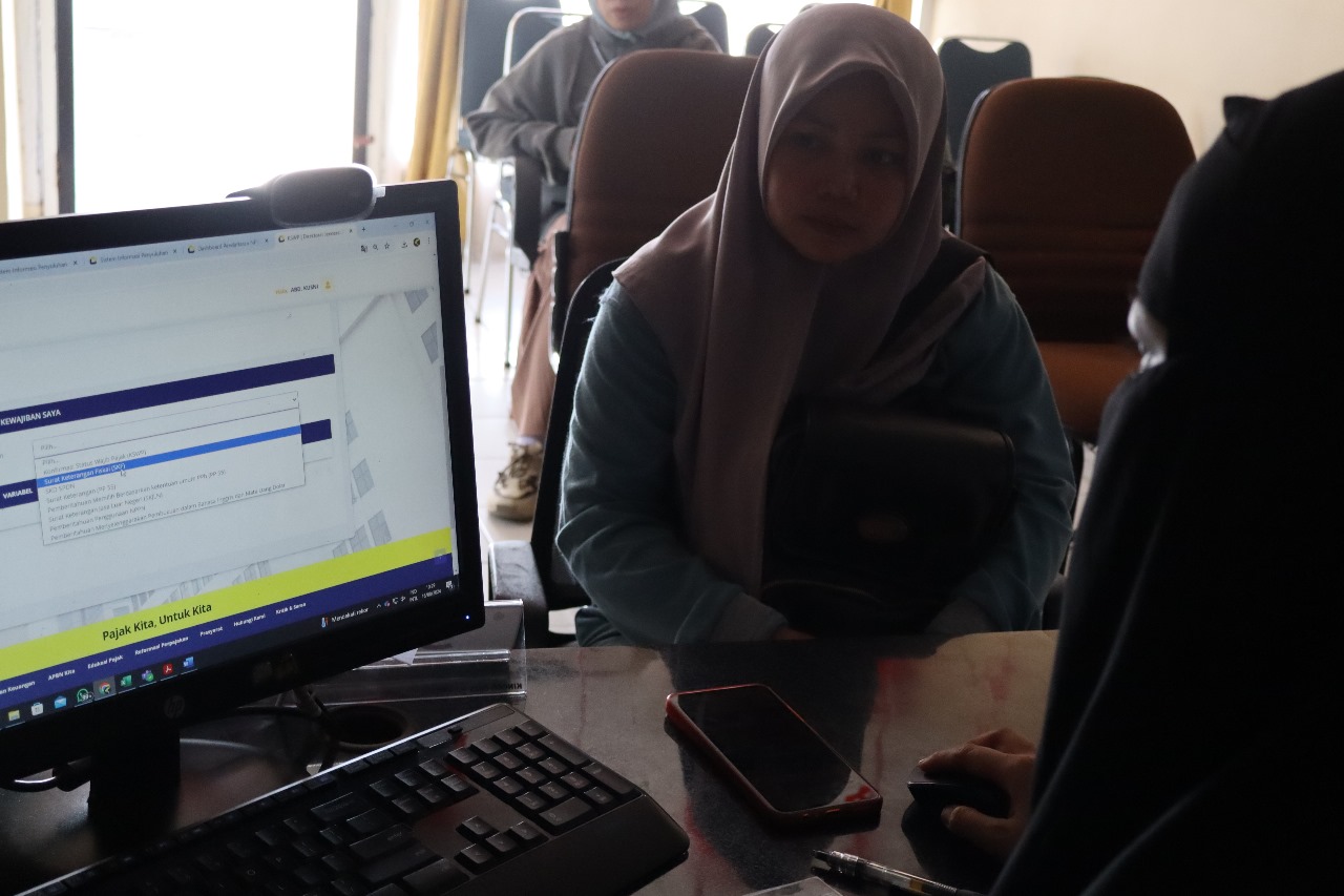 Kantor Pelayanan, Penyuluhan, dan Konsultasi Perpajakan (KP2KP) Pinrang memberikan penjelasan mengenai pengajuan Surat Keterangan Fiskal kepada wajib pajak di Tempat Pelayanan Terpadu (TPT) KP2KP Pinrang (Jumat, 16/8). Wajib pajak tersebut akan mengikuti tender pengadaan barang dan jasa di instansi pemerintah.