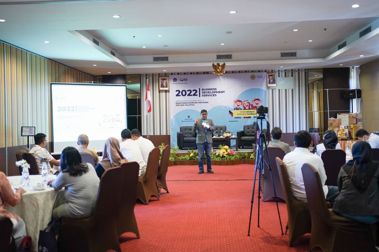 Kantor Pelayanan Pajak (KPP) Pratama Salatiga bekerja sama dengan Sekolah Tinggi Ilmu Ekonomi (STIE) Akademi Manajemen (AMA) Salatiga, menggelar kegiatan Business Development Services (BDS) tahun 2022 melalui Program Kemitraan Masyarakat Stimulus di Ballroom Laras Asri Resort & Spa Salatiga (Senin, 8/8).