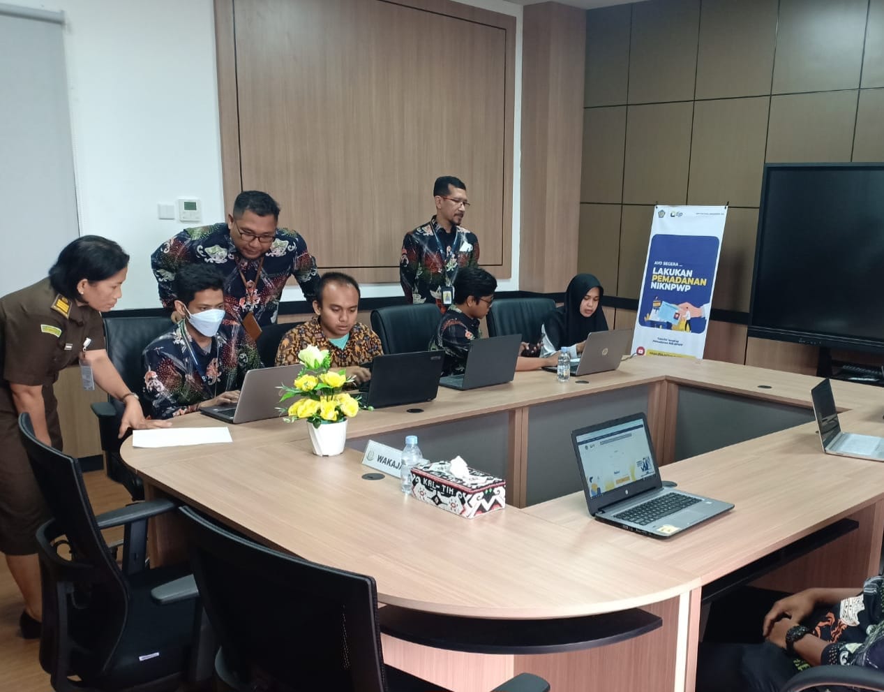 Kantor Pelayanan Pajak (KPP) Pratama Samarinda Ulu gelar pojok pajak dalam rangka jemput bola asistensi pelaporan SPT Tahunan dan pemadanan Nomor Induk Kependudukan (NIK) menjadi Nomor Pokok Wajib Pajak (NPWP) di Kantor Kejaksaan Tinggi Kalimantan Timur, Kota Samarinda (Selasa, 28/3).