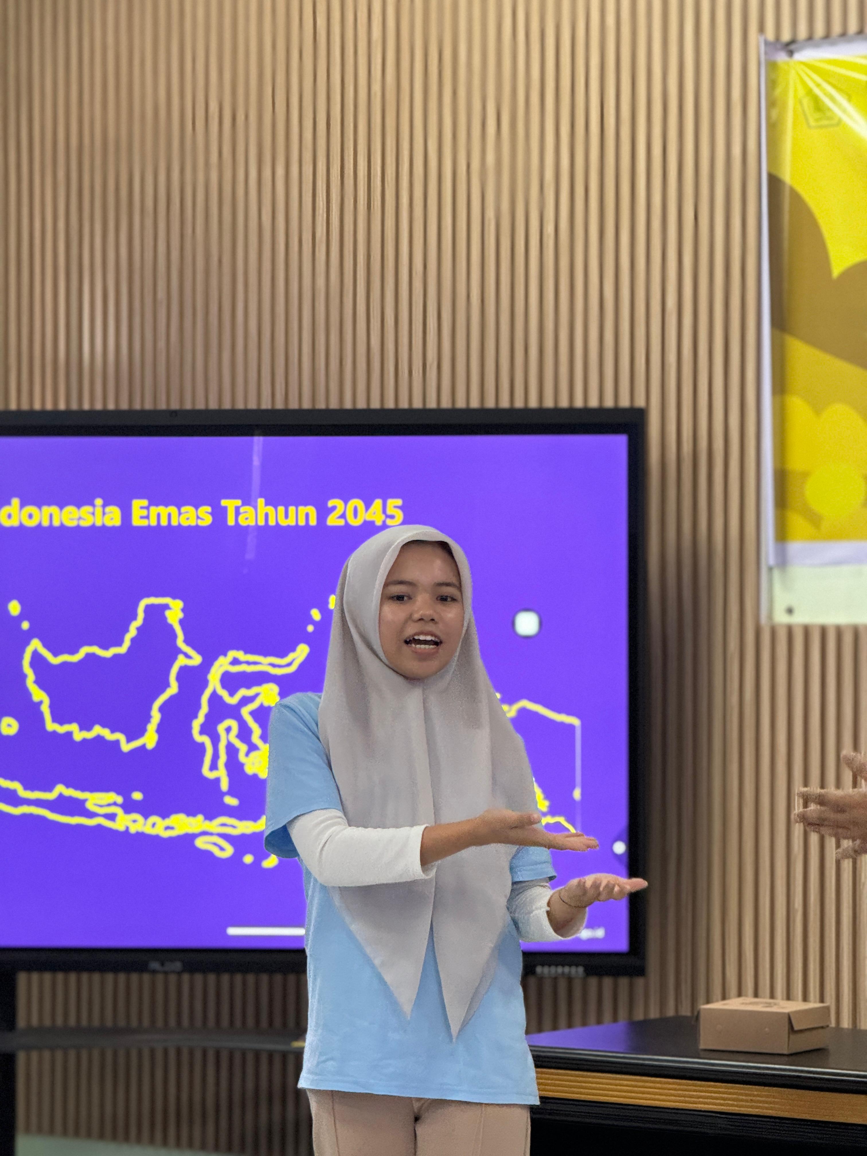 Kegiatan dilanjutkan dengan pemaparan materi yang disampaikan oleh Lutvie Begum Fahira. Para siswa/i diberikan pemahaman mengenai pajak dan manfaatnya dengan cara yang menyenangkan. “Untuk mencapai cita – cita Indonesia Emas 2045, diperlukan peran aktif teman – teman sebagai generasi muda,” tutur Begum.