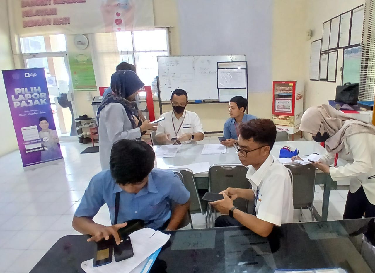 Tim dari KPP Pratama Serang Barat, yang terdiri dari Account Representative Aditia Bagus Indarta dan Ma'ruf Hari Suharyono, Pelaksana Seksi Pengawasan Wahyu Awalludin, serta para relawan pajak, hadir untuk membantu dan membimbing para karyawan dalam proses pelaporan SPT Tahunan PPh Orang Pribadinya.