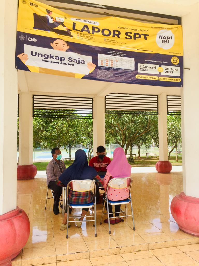 Kantor Pelayanan Pajak Pratama (KPP) Pratama Serang Barat membuka Layanan di Luar Kantor (LDK) dalam rangka pelaporan SPT Tahunan di Kawasan Pusat Pemerintahan Provinsi Banten (KP3B), Kota Serang (Selasa, 22/03).