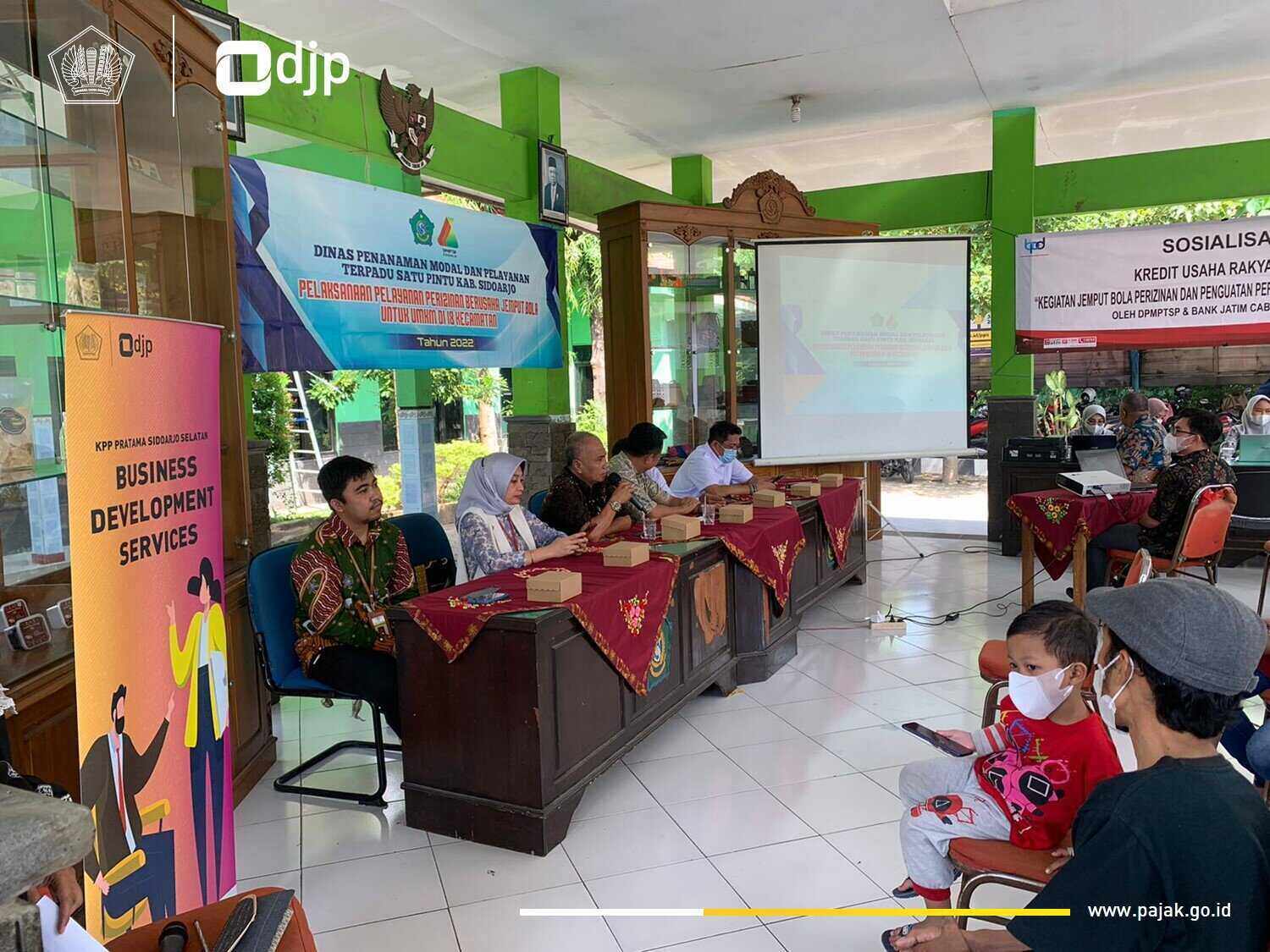 KPP Pratama Siodarjo bekerja sama dengan Dinas Penanaman Modal dan Pelayanan Terpadu Satu Pintu Kabupaten Sidoarjo. Penyuluh Pajak KPP Pratama Sidoarjo Selatan Agung Meliananda selaku narasumber menyampaikan dasar-dasar pembukuan dan perpajakan.