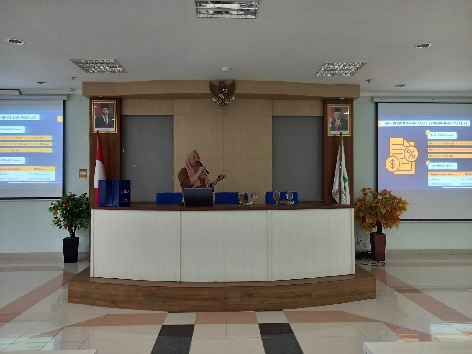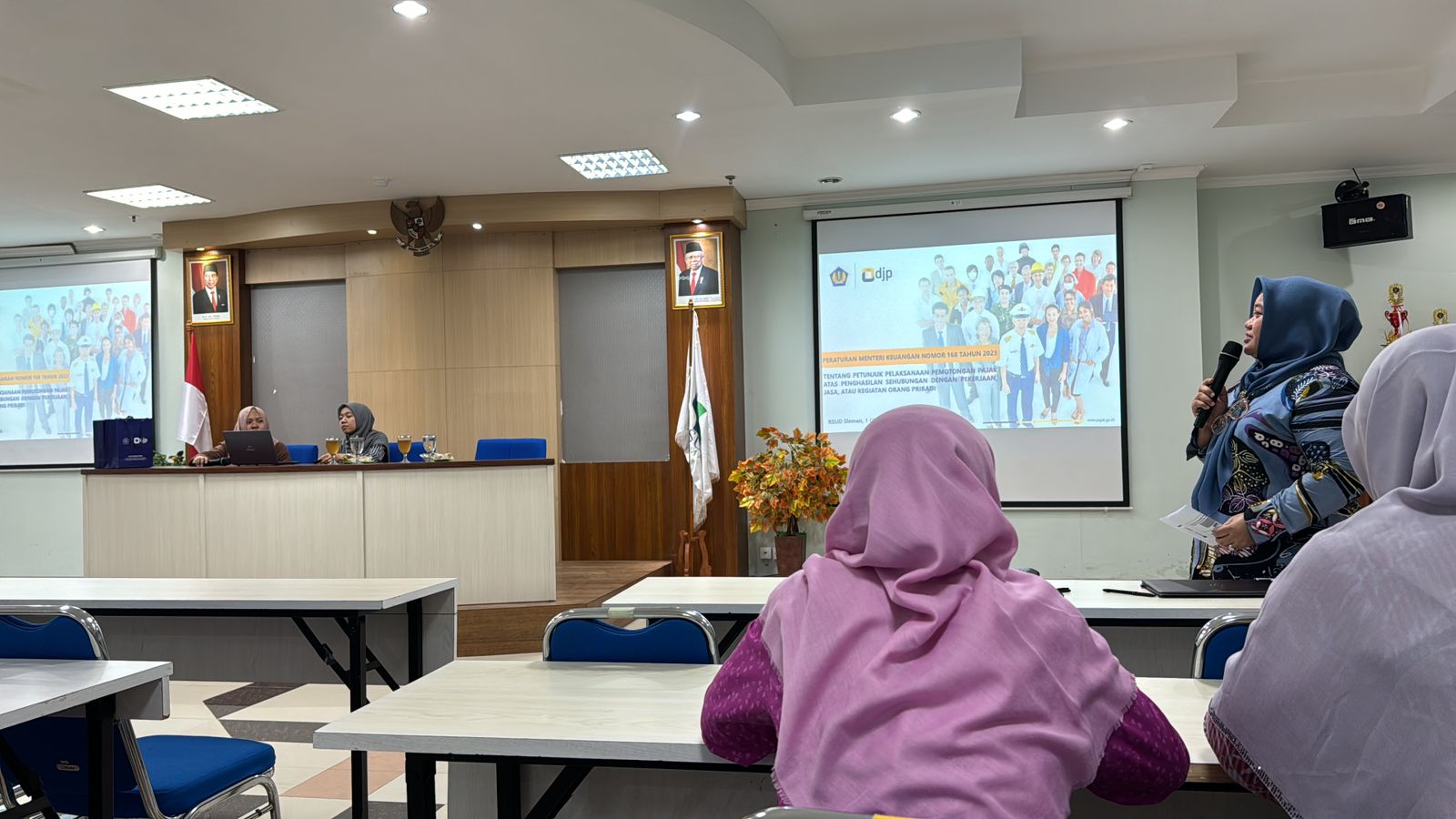 Kantor Pelayanan Pajak (KPP) Pratama Sleman memenuhi undangan dari Rumah Sakit Umum Daerah (RSUD) Sleman untuk memberikan penyuluhan terkait Pemotongan PPh Pasal 21 menggunakan Tarif Efektif Rata-Rata (TER) berdasarkan PMK Nomor 168 Tahun 2023. Acara yang dihadiri oleh pegawai di Bagian Keuangan dan Aset RSUD Sleman ini berlangsung di Ruang Pronojiwo, Lantai 5, GPT RSUD Sleman (Selasa, 2/10).