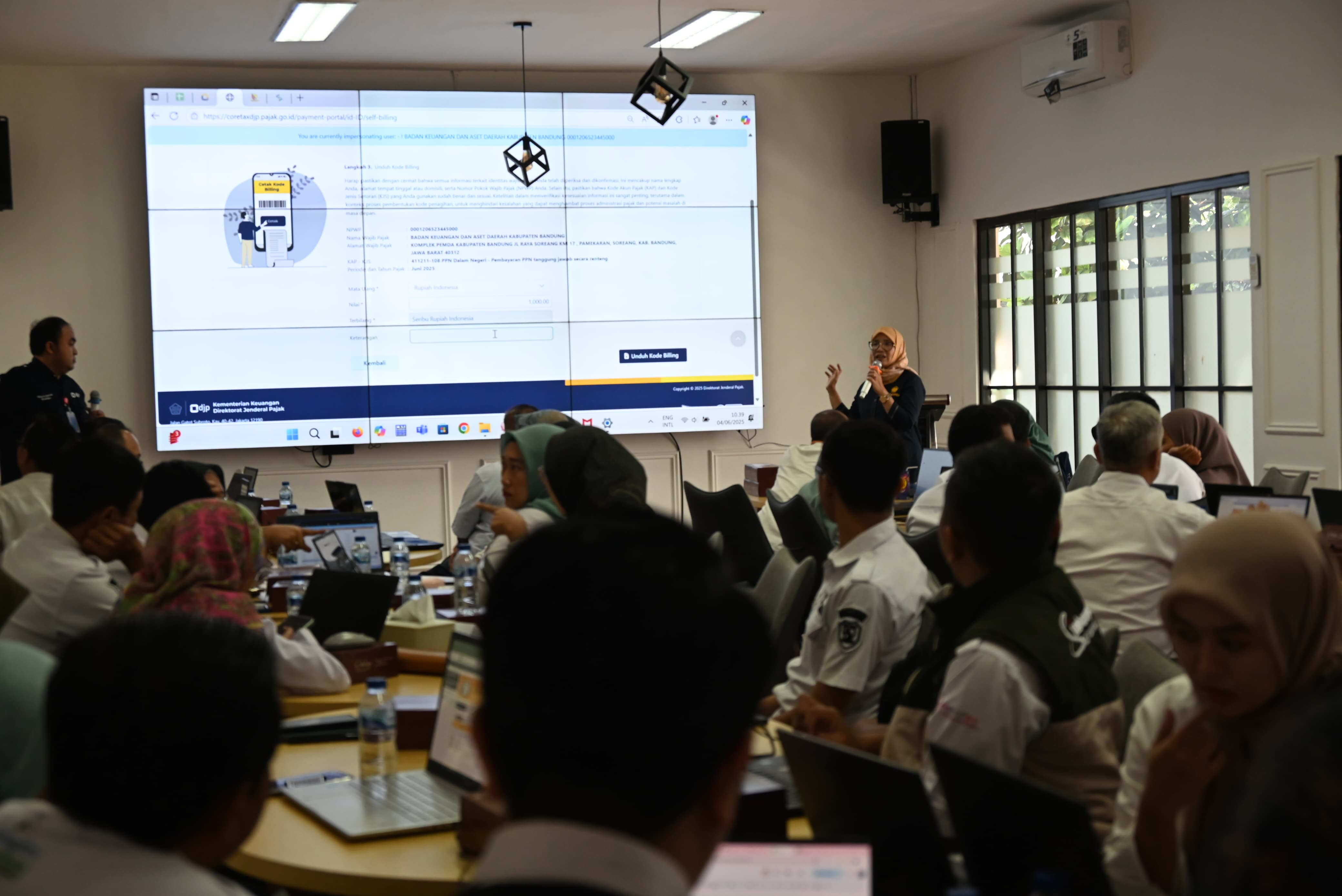 Kantor Pelayanan Pajak (KPP) Pratama Soreang melakukan pendampingan cara bayar dan lapor SPT Masa melalui DJP Online dan Coretax kepada 51 perwakilan organisasi perangkat daerah (OPD) di Aula Dinas Pengelolaan Keuangan dan Aset Daerah (DPKAD) Kab. Bandung, Kabupaten Bandung (Rabu, 4/6).
