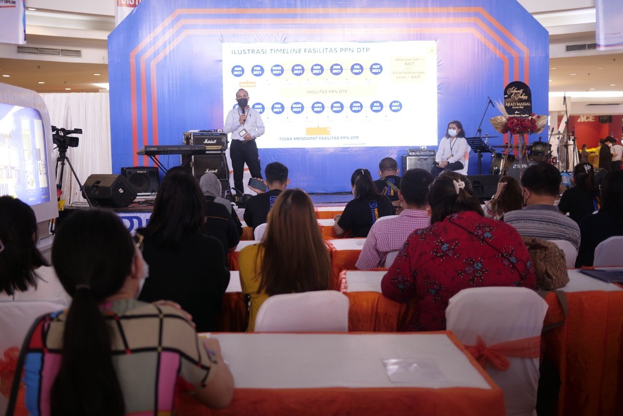 Tim penyuluh Kanwil DJP Suluttenggomalut Dasa Midharma Putera dan Melva Karla Yece Pontoh secara bergantian menyampaikan edukasi terkait Peraturan Menteri Keuangan Nomor PMK-21/PMK.010/2021 tentang Pajak Pertambahan Nilai (PPN) atas Penyerahan Rumah Tapak dan Unit Hunian Rumah Susun yang Ditanggung Pemerintah Tahun Anggaran 2021.