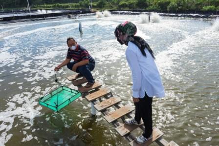 "Selain timah, Bangka juga erat dengan sektor perikanan, jadi kita harus beri perhatian lebih kepada pengusaha tambak" jelas Nia saat kunjungan ke tambak udang PT. Minabahari Merbau Mandiri.