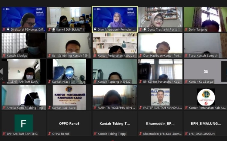 Direktorat Jenderal Pajak mengadakan kegiatan kelas pajak bersama seluruh satuan kerja Kementerian Agraria dan Tata Ruang/Badan Pertanahan Nasional (BPN) Republik Indonesia (RI) Kementerian Lingkungan Hidup dan Kehutanan yang berada dalam wilayah kerja Kantor Wilayah Direktorat Jenderal Pajak (Kanwil DJP) Sumatera Utara II secara daring (Selasa, 24/8).