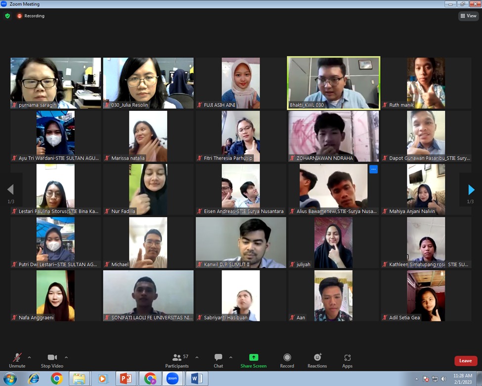Kantor Wilayah Direktorat Jenderal Pajak (Kanwil DJP) Sumatera Utara II mengadakan Pelatihan Perpajakan bagi calon Relawan Pajak di lingkungan Kanwil DJP Sumatera Utara II. Kegiatan ini dilaksanakan secara daring melalui Zoom Meeting (Rabu, 1/2). Pelatihan ini diikuti oleh 90 orang mahasiswa dan dosen Perguruan Tinggi yang bekerja sama dengan Kanwil DJP Sumatera Utara II.