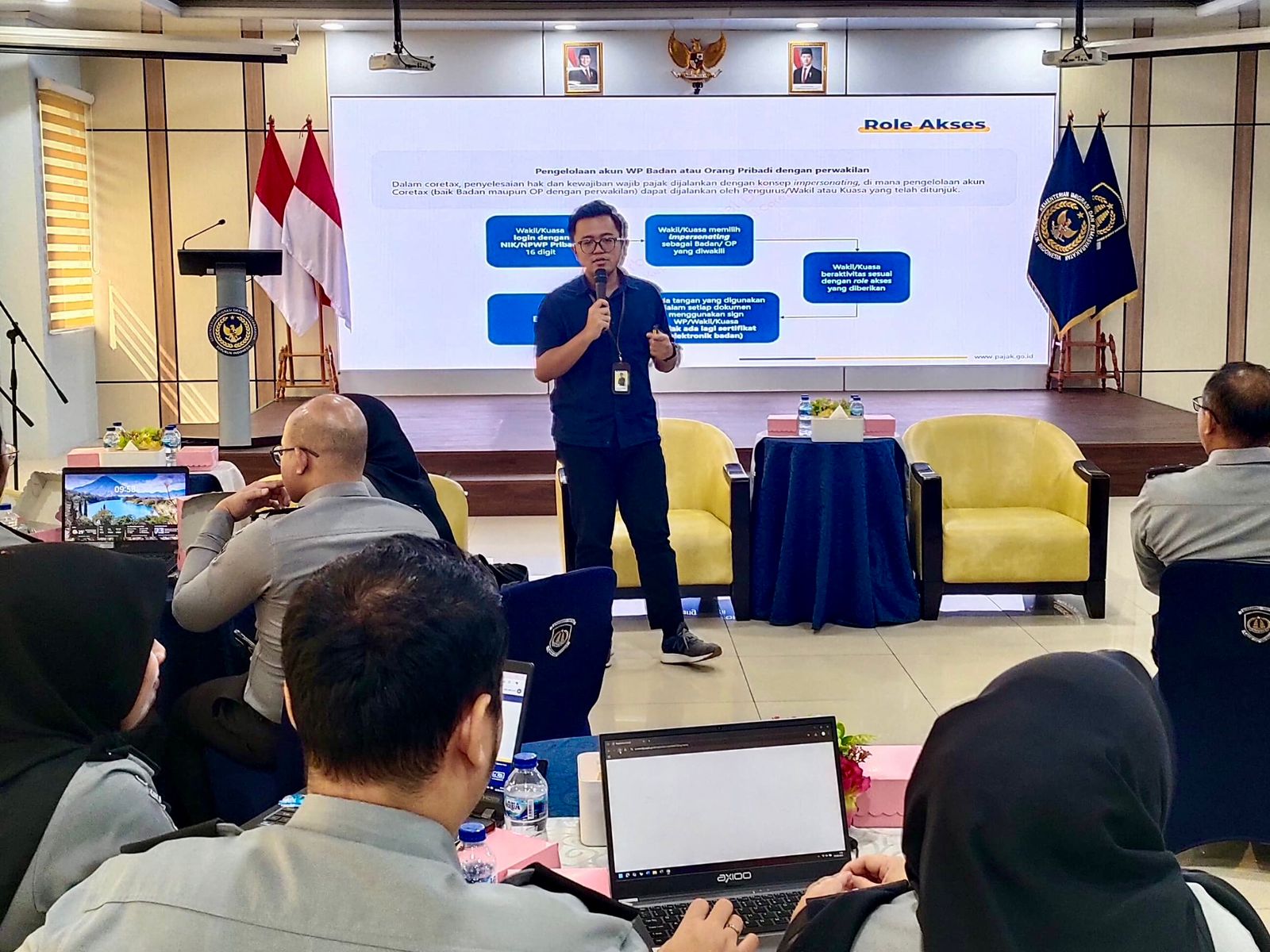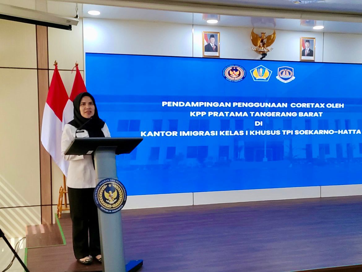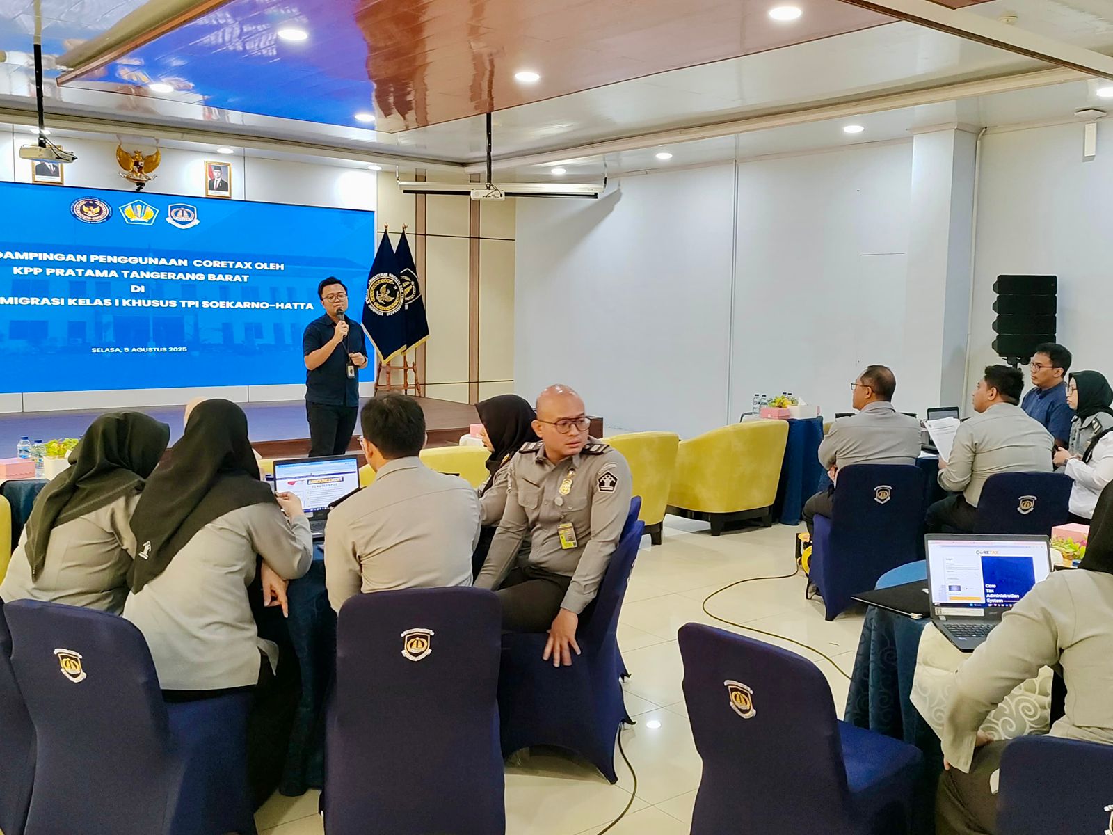 Kantor Pelayanan Pajak (KPP) Tangerang Barat memberikan pendampingan penggunaan aplikasi Coretax DJP kepada Kantor Imigrasi Kelas I Khusus Tempat Pemeriksaan Imigrasi (TPI) Soekarno-Hatta. Penadmpingan ini bertempat di Aula Perkantoran Bandara Soekarno-Hatta, Jalan Pajang, Benda, Kota Tangerang, Banten (Selasa, 2/9).