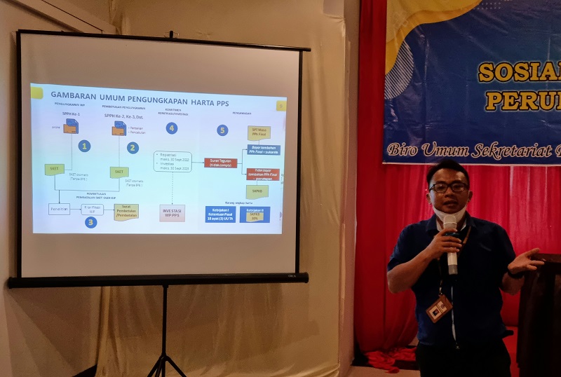 Kantor Pelayanan Pajak (KPP) Pratama Tanjung Pinang melaksanakan sosialisasi Program Pengungkapan Sukarela (PPS) kepada Aparatur Sipil Negara (ASN) di lingkungan Sekretariat Daerah Provinsi Kepulauan Riau (Setdaprov Kepri) bertempat di Hotel CK, Tanjungpinang, Kepulauan Riau (Kamis, 16/6). Pemerintah saat ini gencar menggaungkan PPS, program untuk wajib pajak untuk mengungkapkan hartanya yang belum dilaporkan dalam Program Tax Amnesty dan Surat Pemberitahuan (SPT) Tahunan PPh.