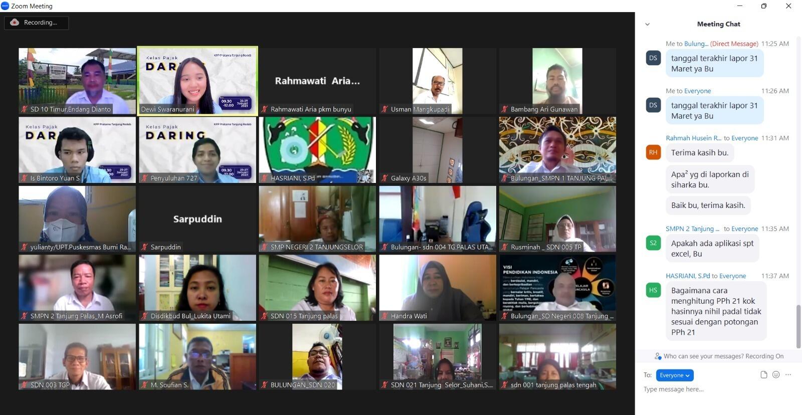 Tim Penyuluh Kantor Pelayanan Pajak (KPP) Pratama Tanjung Redeb menyelenggarakan kelas pajak yang dilaksanakan secara daring di KPP Pratama Tanjung Redeb, Jenderal Sudirman No. 104, Pamusian, Tarakan Tengah, Tarakan, Kalimantan Utara (Rabu, 15/2).