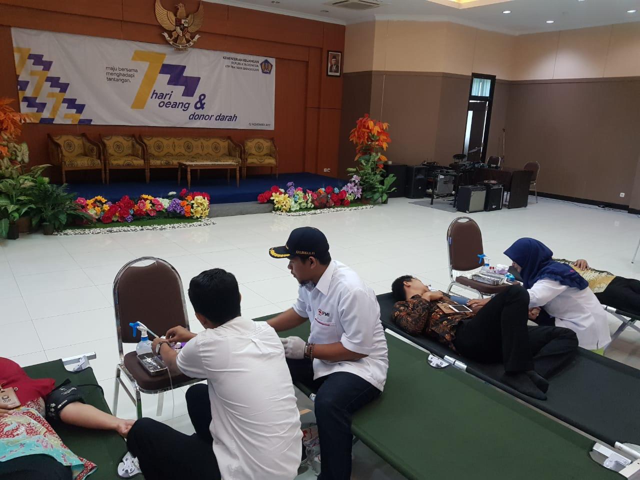 Bekerja sama dengan PMI Bangkalan, KPP Pratama Bangkalan menggelar aksi donor darah yang melibatkan pegawai dan karyawan di lingkungan KPP Pratama Bangkalan bertempat di aula kantor, Bangkalan (Selasa, 12/11).