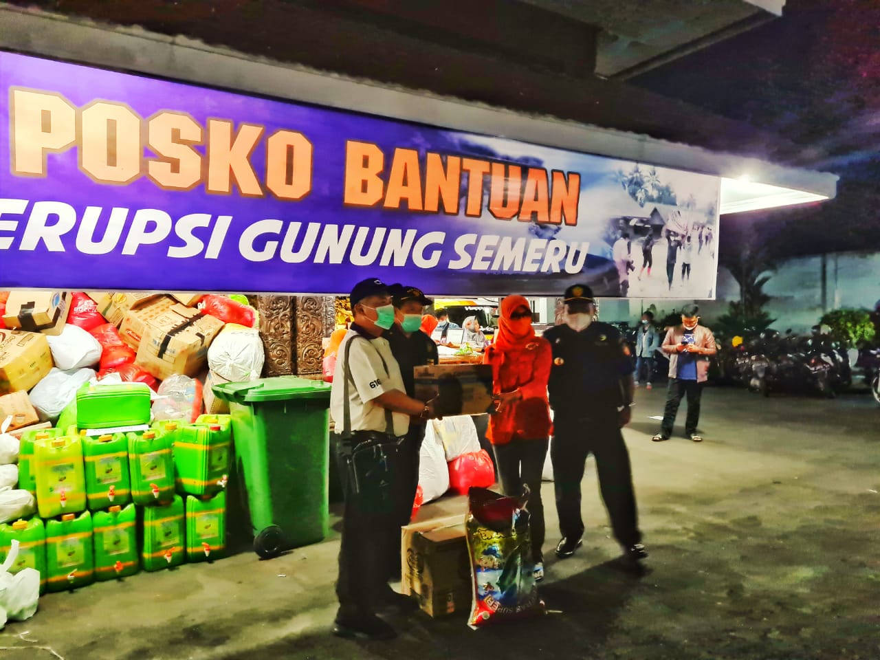 Kantor Pelayanan Pajak (KPP) Pratama Probolinggo dan Kantor Pengawasan dan Pelayanan Bea dan Cukai Tipe Madya Pabean C (KPPBC TMP C) Probolinggo menyampaikan donasi dari Kementerian Keuangan dan Direktorat Jenderal Pajak (DJP) ke posko bantuan erupsi Gunung Semeru Pendopo Kabupaten Lumajang, Jawa Timur (Senin, 6/12).