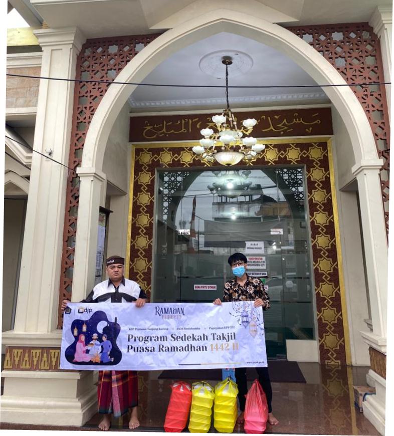 Sebagai bentuk kepedulian kepada sesama, KPP Tanjung Karang membagikan makanan dan takjil untuk berbuka puasa kepada masyarakat Bandar Lampung pada hari pertama Ramadan 1442 H di Masjid Al Mubaligh (Selasa, 13/4).