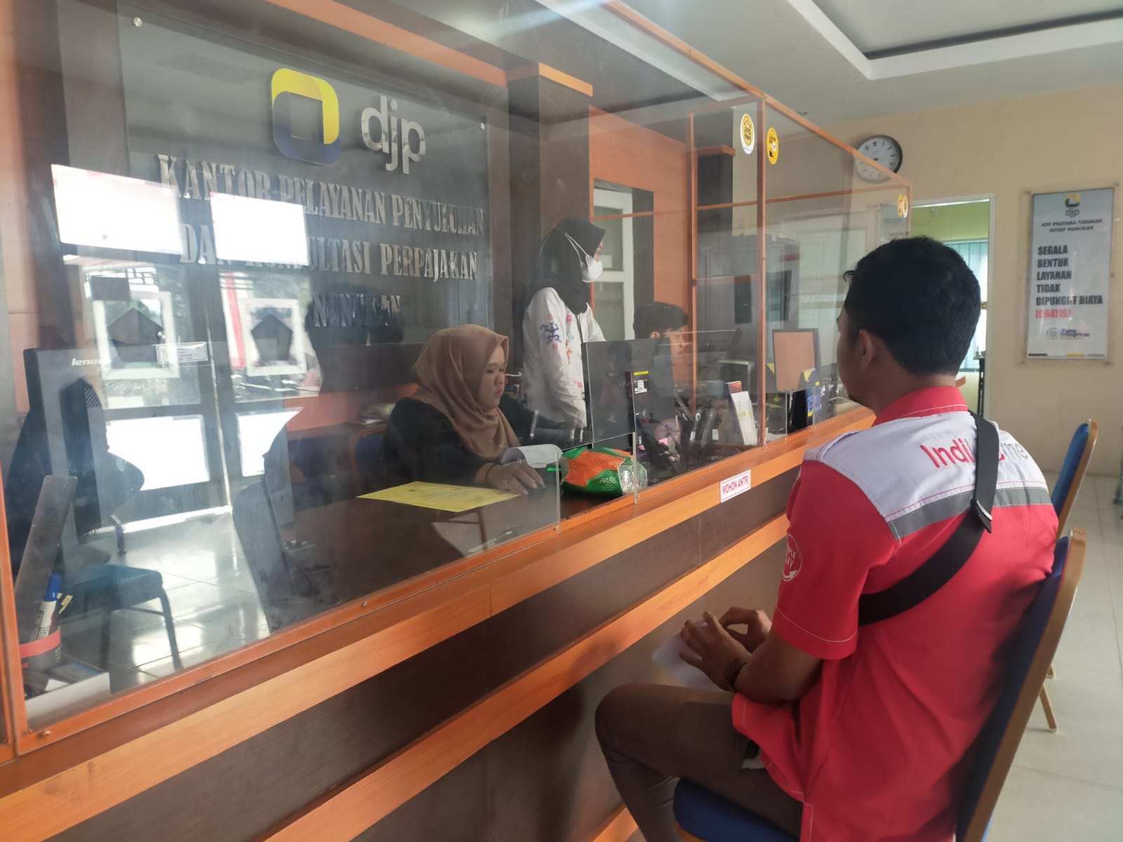 Terdapat sekitar lima pegawai IndiHome yang datang secara bersamaan ke KP2KP Nunukan. Dengan menggunakan seragam lengkap, mereka mendatangi KP2KP Nunukan untuk meminta bantuan kepada petugas untuk melakukan pendaftaran Nomor Pokok Wajib Pajak (NPWP).
