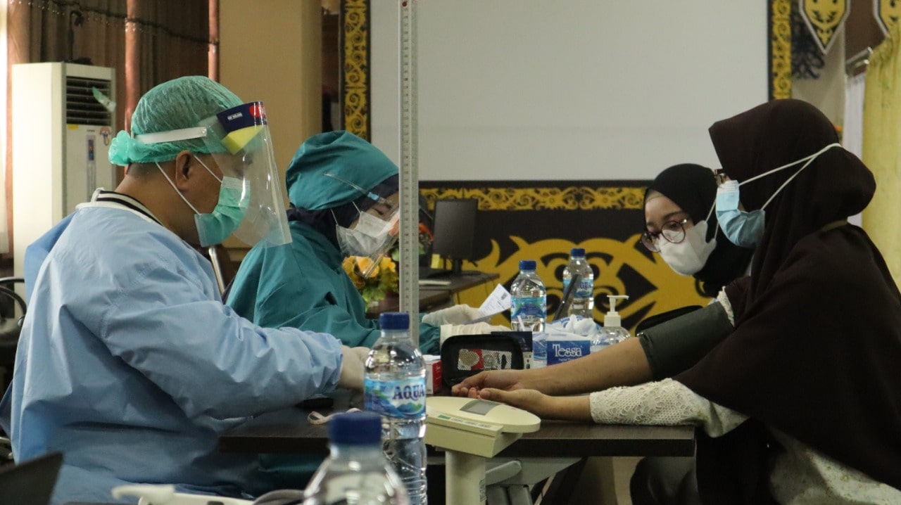 Sebelum menerima vaksin, seluruh pegawai mengikuti proses pemeriksaan kesehatan untuk memastikan pegawai dalam kondisi baik untuk menerima vaksin. Bagi pegawai yang lolos proses pemeriksaan kesehatan diperbolehkan untuk menerima suntikan vaksin Covid-19.