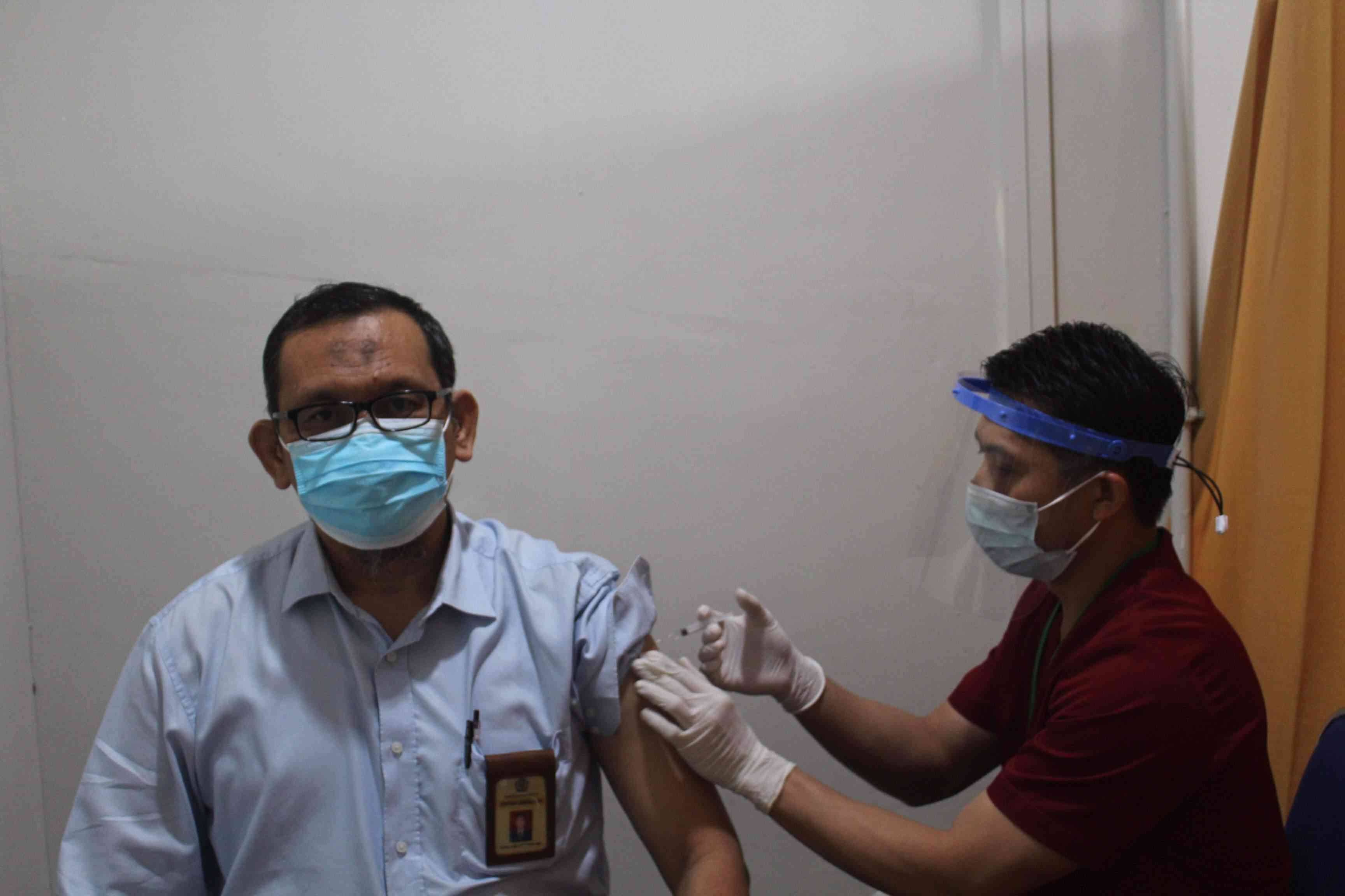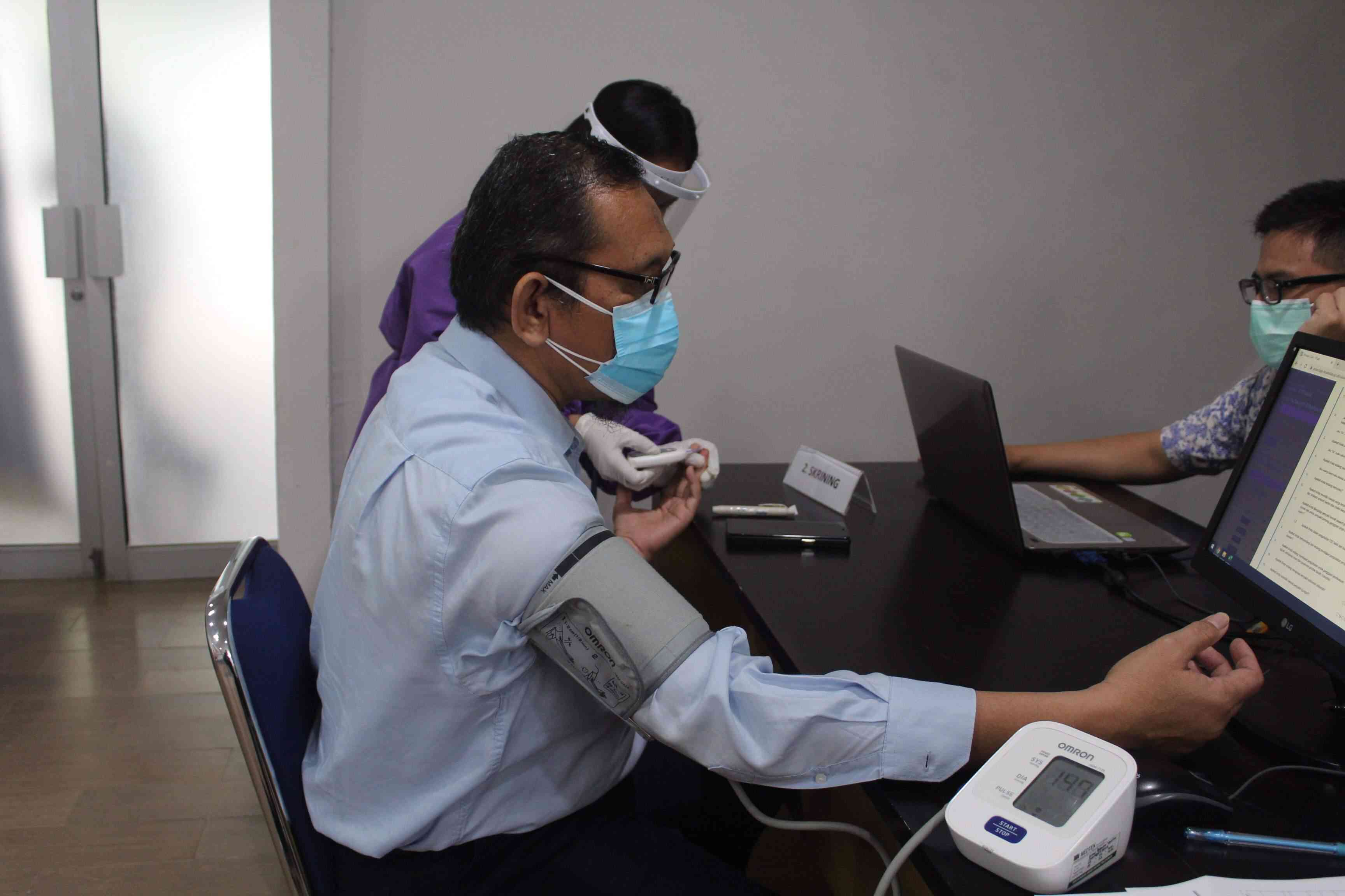 Hanya pegawai yang telah mendapat hasil tes usap antigen negatif yang dapat didaftarkan sebagai penerima vaksinasi Covid-19. Tes usap antigen tersebut telah dilakukan pada hari sebelumya. Setelah melalui proses pendaftaran, pegawai akan melalui proses skrining, yaitu cek tekanan darah, tes gula darah, dan menjawab pertanyaan-pertanyaan terkait riwayat penyakit pegawai tersebut.
