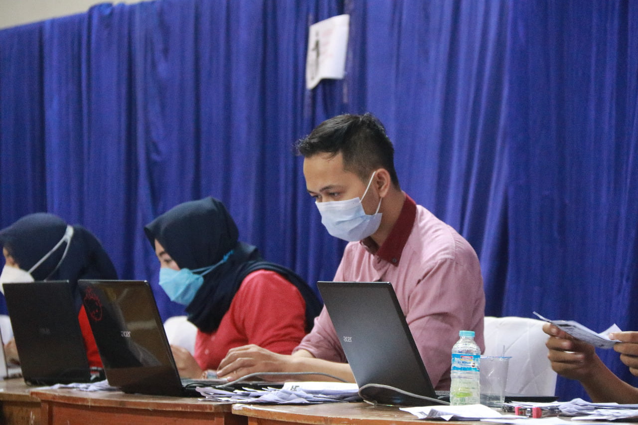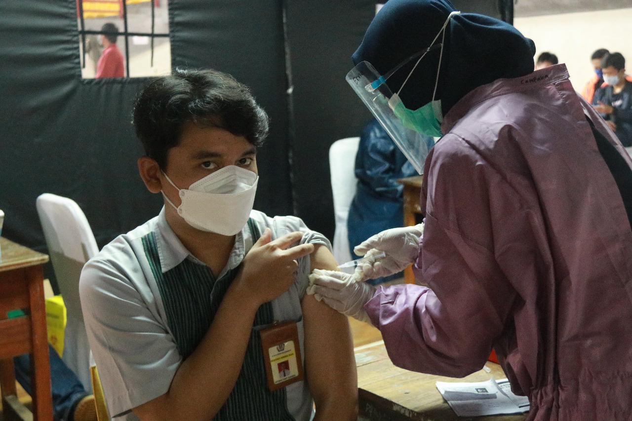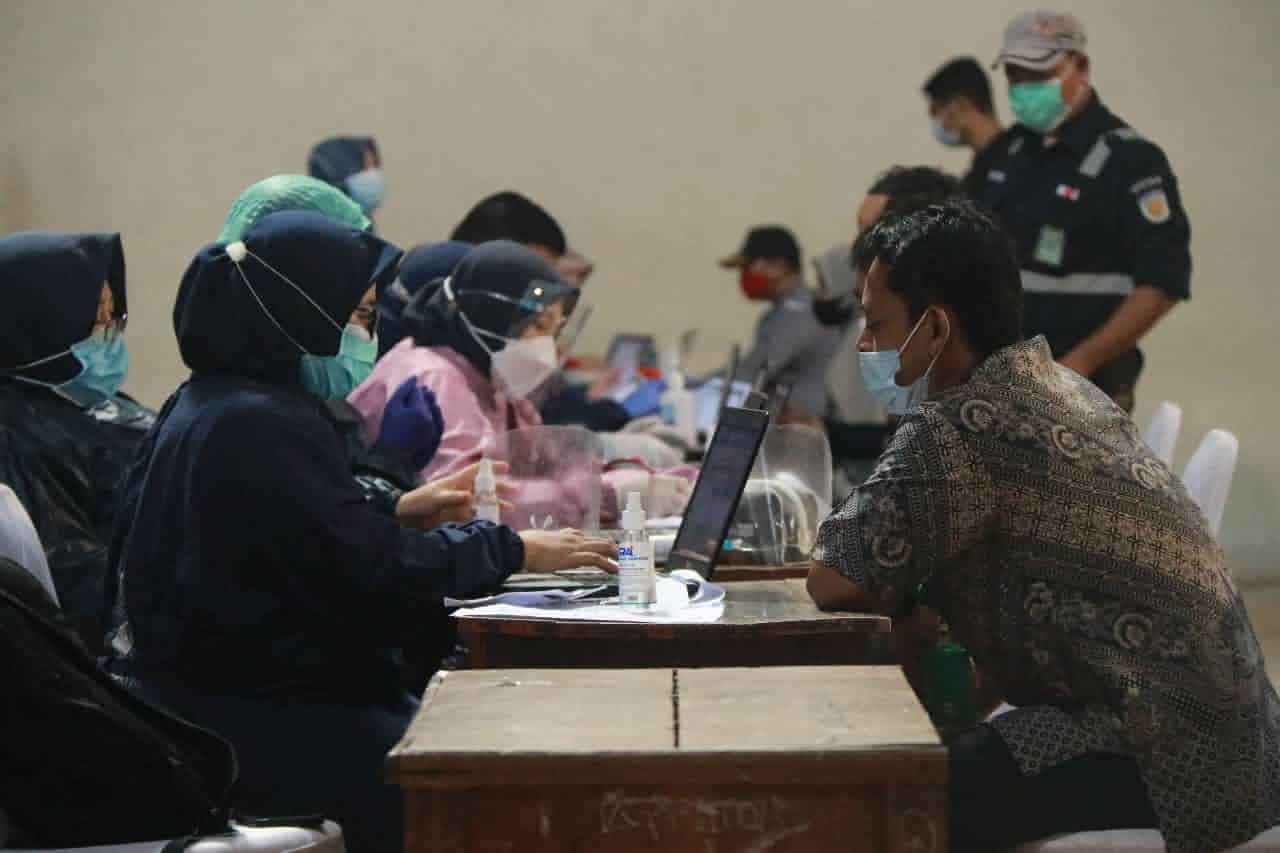 Pegawai Kantor Pelayanan Pajak Pratama Purwakarta mengikuti program vaksinasi Covid-19 gelombang pertama yang dilaksanakan oleh Dinas Kesehatan Kabupaten Purwakarta di Gedung Sigrong, Kab. Purwakarta dan di GOR Purnawarman, Kab. Purwakarta (Jumat, 19/3).
