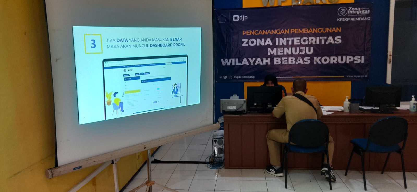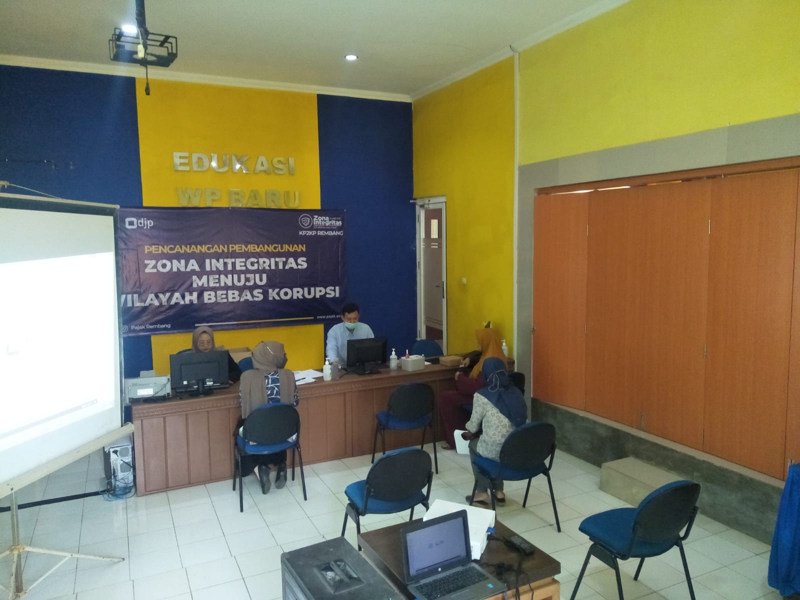 Kantor Pelayanan, Penyuluhan, dan Konsultasi Perpajakan (KP2KP) Rembang mengadakan memberikan edukasi pelaporan Surat Pemberitahuan (SPT) Tahunan dan Pemadanan Nomor Induk Kependudukan (NIK) menjadi Nomor Pokok Wajib Pajak (NPWP) di Aula KP2KP Rembang (Senin, 6/3).