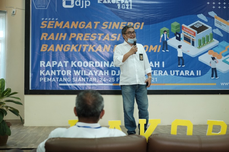 Kantor Wilayah Direktorat Jederal Pajak (DJP) Sumatera Utara II melaksanakan Rapat Koordinasi Daerah Pertama Tahun 2021 di Kanwil DJP Sumatera Utara II, Pematang Siantar, Sumatera Utara (25/2).