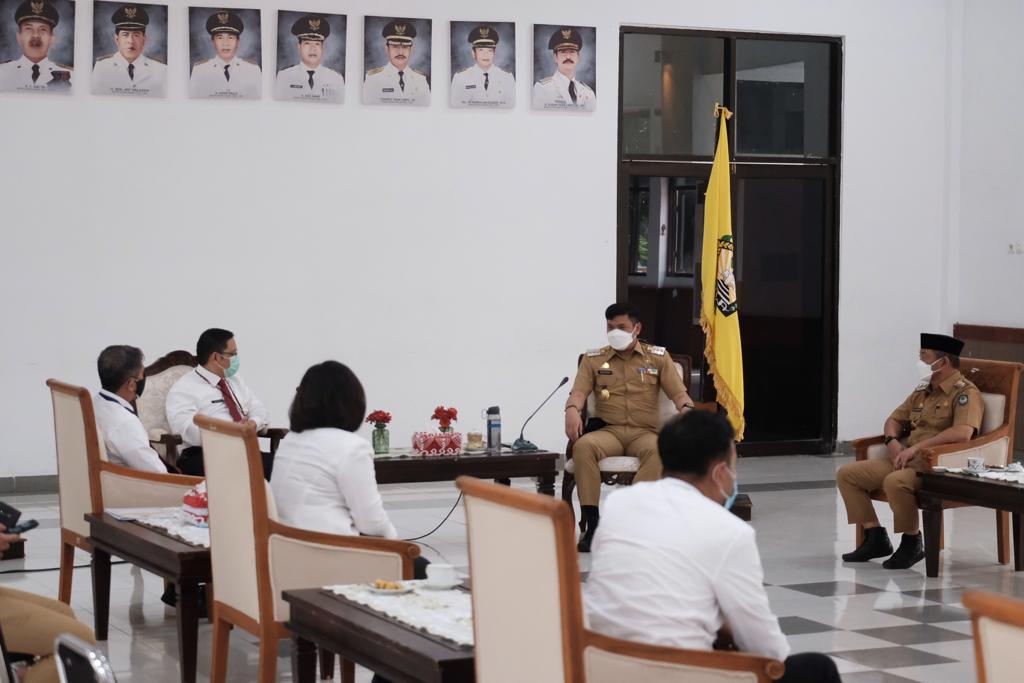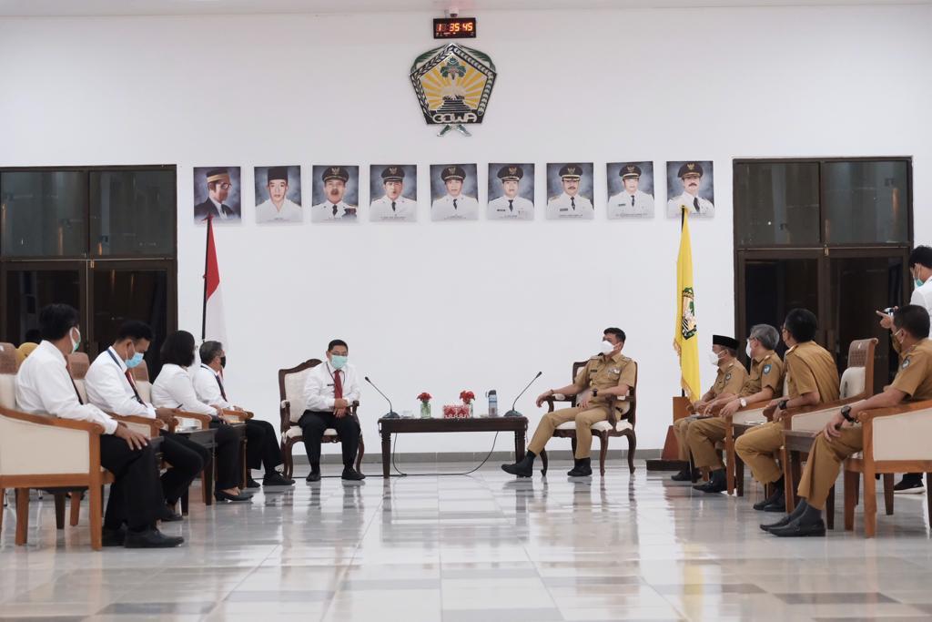 Kepala Bidang Data dan Pengawasan Potensi Perpajakan (DP3) Kanwil DJP Sulselbartra Hendrayana Surasantika dan Kepala KPP Pratama Bantaeng Tjandra Prihandono melakukan kunjungan kerja ke Kantor Bupati Gowa, Baruga Karaeng Galesong, Kabupaten Gowa (Senin, 15/3).