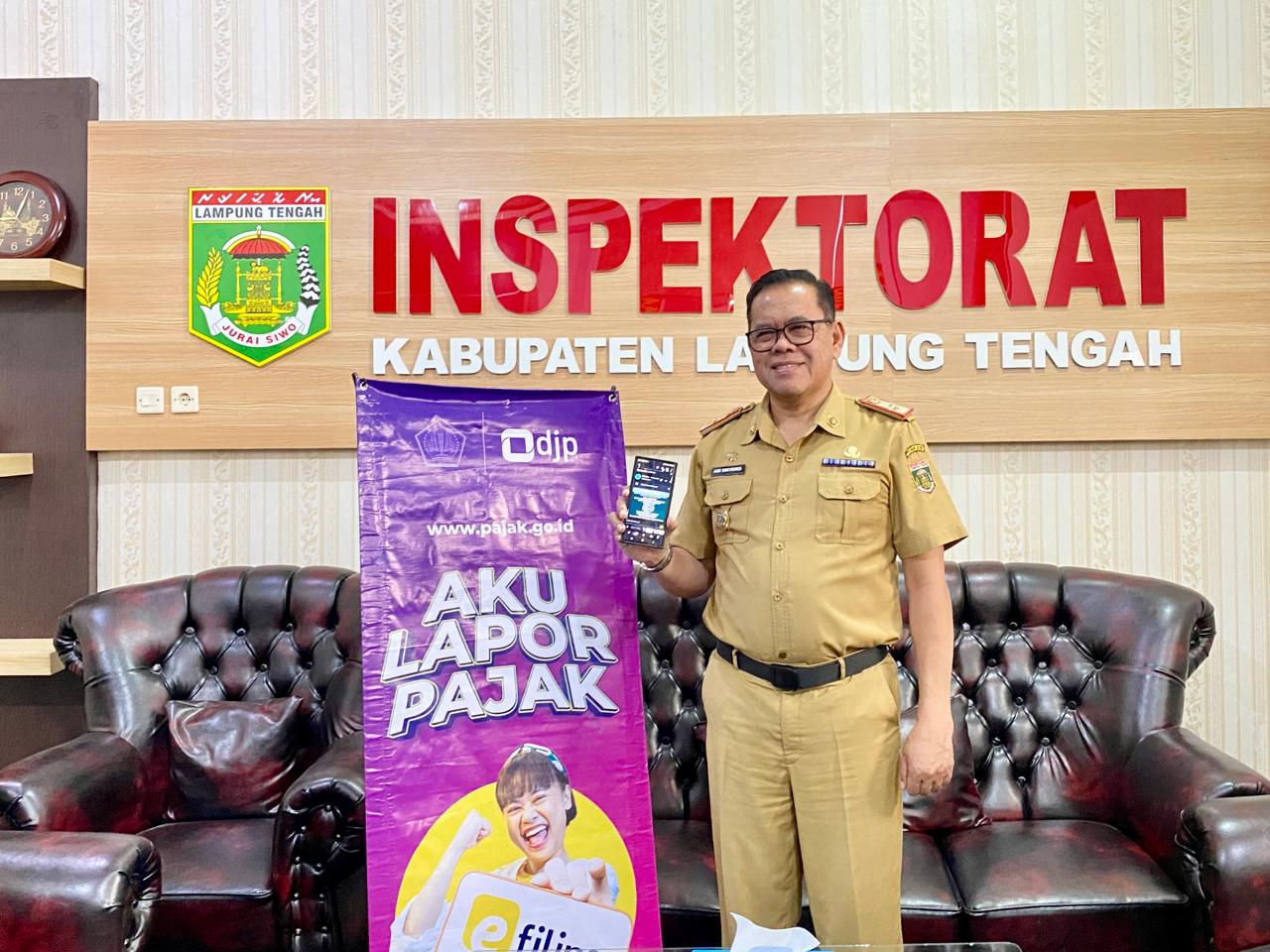 Inspektur Kabupaten Lampung Tengah, Adi Sriyono menerima kedatangan Kepala KP2KP Bandarjaya, Widi Nugroho bersama Kepala Seksi Pelayanan KPP Pratama Metro, Agus Iskandar beserta tim. Dalam kesempatan ini, Adi yang telah melaksanakan kewajiban perpajakannya, mengimbau seluruh wajib pajak di Wilayah Kabupaten Lampung Tengah untuk segera melaporkan Surat Pemberitahuan (SPT) Tahunan melalui laman djponline.pajak.go.id.