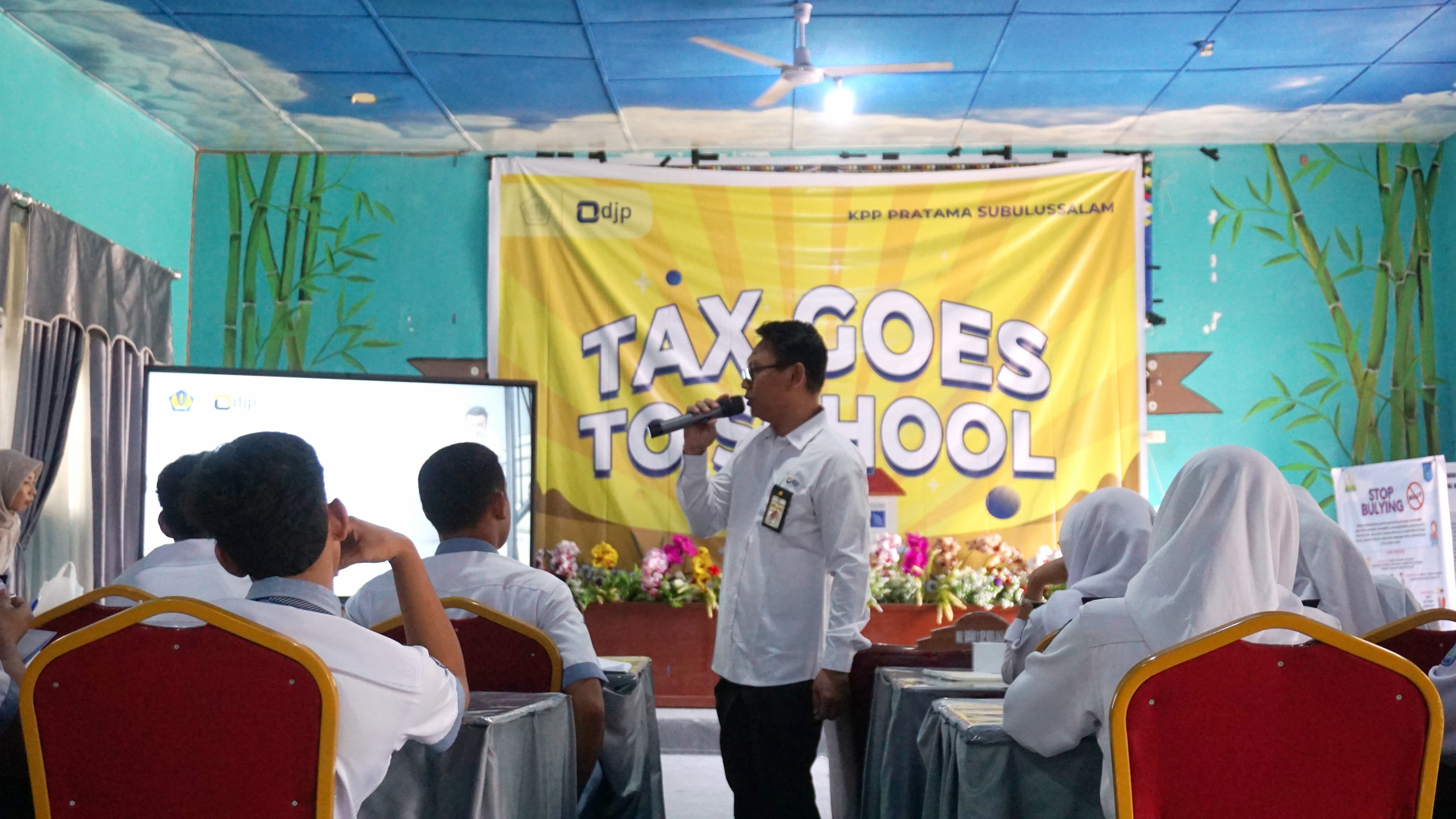 Kantor Pelayanan Pajak (KPP) Pratama Subulussalam mengadakan kegiatan Tax Goes To School (TGTS) yang bertempat di Aula Sekolah Menengah Atas (SMA) Negeri 1 Simpang Kiri Kota Subulussalam, Provinsi Aceh (Senin, 22/7). TGTS bertujuan untuk mengedukasi para siswa sekolah tentang pajak agar mereka menjadi wajib pajak yang taat di kemudian hari.