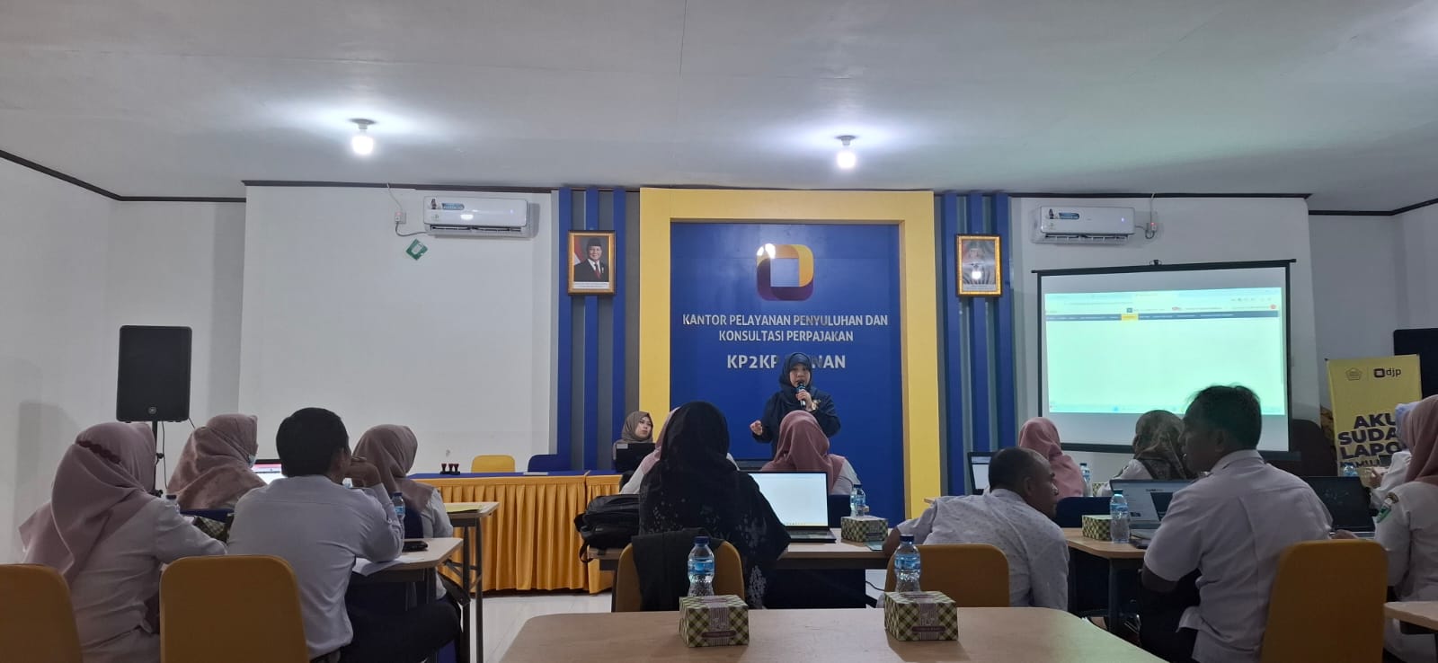Kantor Pelayanan, Penyuluhan, dan Konsultasi Perpajakan (KP2KP) Painan mengadakan kegiatan Bimbingan Teknis (Bimtek) Aplikasi Coretax DJP kepada aparatur pemerintahan nagari dari Kecamatan Sutera, Kabupaten Pesisir Selatan, di Aula KP2KP Painan, Kabupaten Pesisir Selatan (Rabu, 23/4).