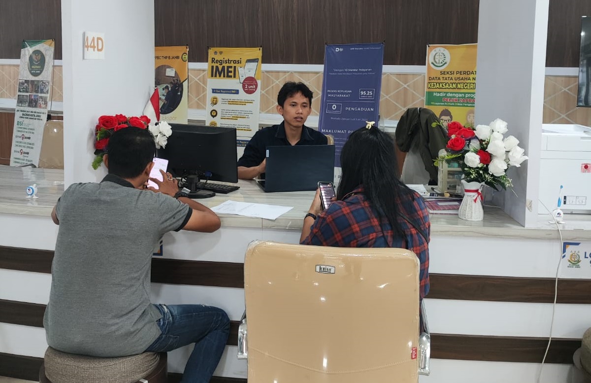 Kantor Pelayanan Pajak (KPP) Pratama Jambi Telanaipura memberikan edukasi terkait Konfirmasi Status Wajib Pajak (KSWP) kepada pemilik usaha kedai makanan, seorang wajib pajak orang pribadi, di Mal Pelayanan Publik (MPP) Kota Jambi, Paal Lima, Kecamatan Kota Baru, Kota Jambi (Rabu, 18/9).