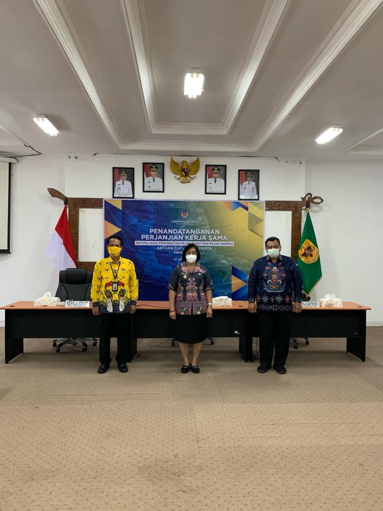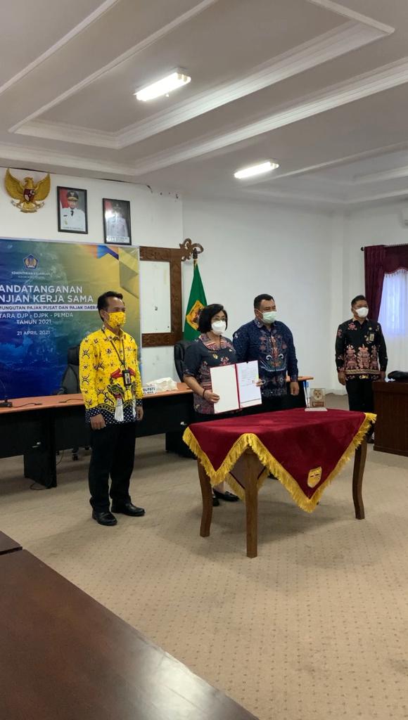 Pemerintah Kabupaten Gunung Mas yang diwakili oleh Wakil Bupati Efrensia L.P. Umbing mengikuti secara daring kegiatan Penandatanganan Perjanjian Kerja Sama (PKS) tentang Optimalisasi Pemungutan Pajak Pusat dan Pajak Daerah antara Direktorat Jenderal Pajak (DJP), Direktorat Jenderal Perimbangan Keuangan (DJPK), dan pemerintah daerah (pemda) di ruang rapat lantai 1 Kantor Bupati Gunung Mas, Kalimantan Tengah (Rabu, 21/4).