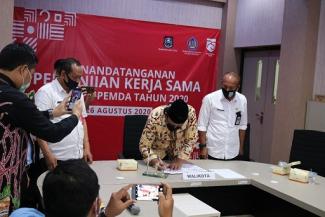 Pemerintah Daerah Kota Tegal menandatangani Perjanjian Kerja Sama (PKS) dengan Direktorat Jenderal Pajak (DJP) dan Direktorat Jenderal Perimbangan Keuangan (DJPK), bertempat di ruang Konferensi Video Dinas Komunikasi dan Informasi komplek Balai Kota Tegal (Rabu, 26/8).
