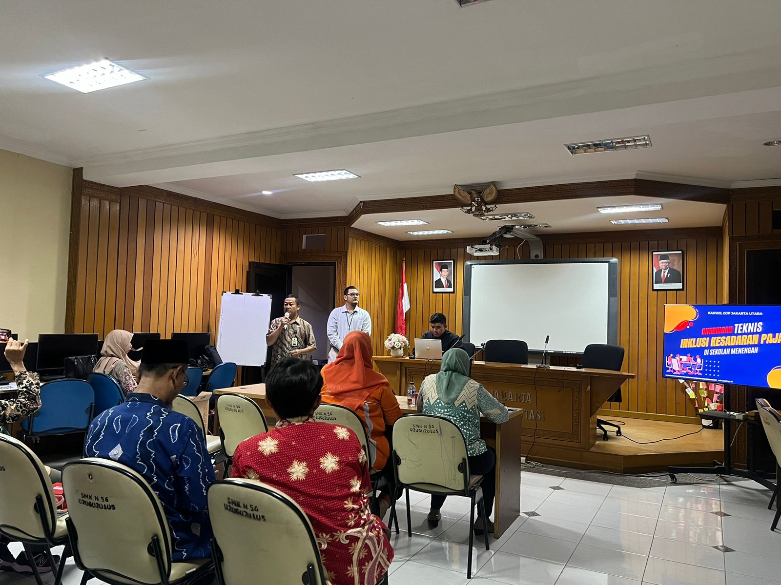 Penyuluh Pajak Kantor Wilayah Direktorat Jenderal Pajak (Kanwil DJP) Jakarta Utara menyelenggarakan bimbingan teknis Inklusi Kesadaran Pajak untuk pertama kalinya ke Sekolah Menengah Kejuruan (SMK) Negeri 56 Jakarta di Jakarta Utara (Kamis, 12/1).