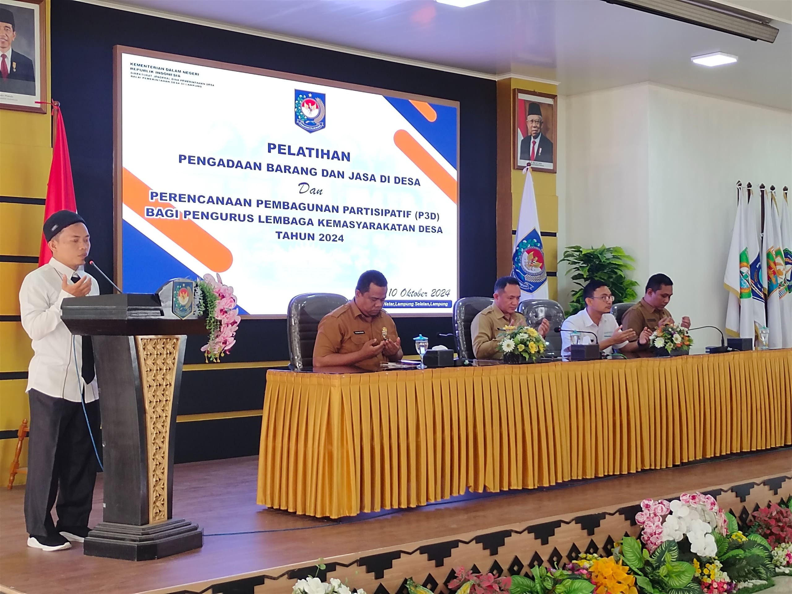 Kantor Pelayanan Pajak (KPP) Pratama Natar menjadi narasumber dalam gelaran Pelatihan Pengadaan Barang dan Jasa di Desa dan Perencanaan Pembangunan Partisipatif (P3D) Bagi Pengurus Lembaga Kemasyarakatan Desa (LKD) Tahun 2024 bertempat di Aula Balai Pemerintahan Desa (Pemdes) Lampung, Jalan Trans Sumatera KM 25, Candimas, Natar, Kab. Lampung Selatan (Senin, 14/10). Pelatihan tersebut dilaksanakan selama 4 (empat) hari mulai dari tanggal 14 hingga 17 Oktober 2024.