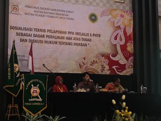 Penyuluh Pajak Kantor Pelayanan Pajak (KPP) Pratama Garut menjadi narasumber dalam acara Sosialisasi Teknis Pelaporan Pajak Penghasilan (PPh) melalui e-PHTB sebagai Dasar Pengalihan Hak atas Tanah dan Bangunan (PHTB) yang digelar oleh Ikatan Notaris Indonesia (INI) dan Ikatan Pejabat Pembuat Akta Tanah (IPPAT) di Kabupaten Garut (Selasa, 15/8).