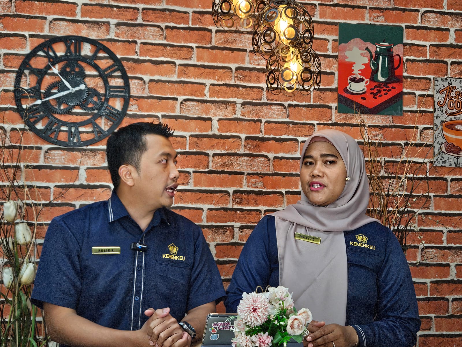 Fungsional Penyuluh Pajak Kantor Pelayanan Pajak (KPP) Madya Jakarta Utara terdiri dari Fanita Pratiwi dan Kelik Kristanto memberikan sosialisasi terkait aturan pemindahbukuan melalui live Instagram yang ditonton peserta di Kedap Room, Lantai Sembilan Gedung KPP Madya Jakarta Utara (Rabu, 19/03).