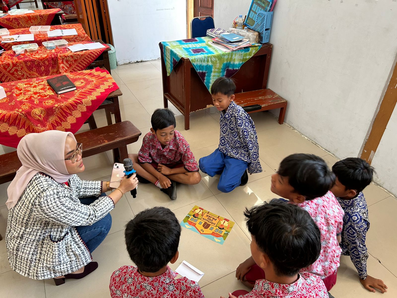 “Pajak itu uang yang dibayarkan orang tua kita ke negara, supaya negara bisa membangun jalan, sekolah, taman bermain, rumah sakit, dan lainnya! Ajaib kan fungsinya?” kata Dhisti saat membacakan dongeng.