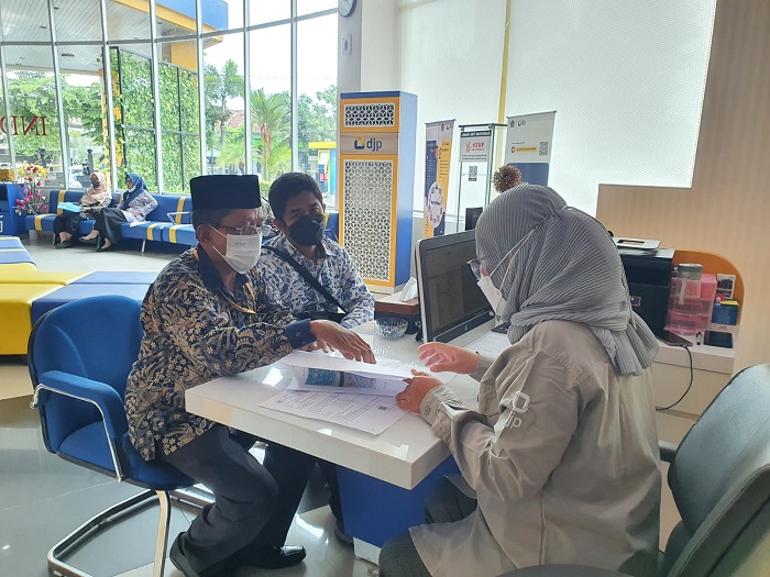 Fungsional Penyuluh Kantor Pelayanan Pajak (KPP) Pratama Sukoharjo Rizki Amalia mengedukasi salah satu wajib pajak koperasi di Wonogiri yang hadir untuk mengikuti sosialisasi bimbingan perpajakan one on one di KPP Pratama Sukoharjo (Kamis, 9/2).