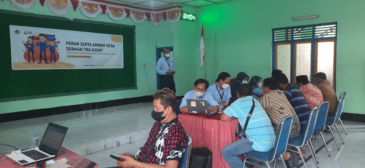Kantor Pelayanan Pajak (KPP) Pratama Karanganyar bekerja sama dengan Tax Agent Eksternal Desa Ngringo mengadakan kegiatan asistensi pengisian Surat Pemberitahuan (SPT) Tahunan di Balai Desa Ngringo (Rabu, 24/8).